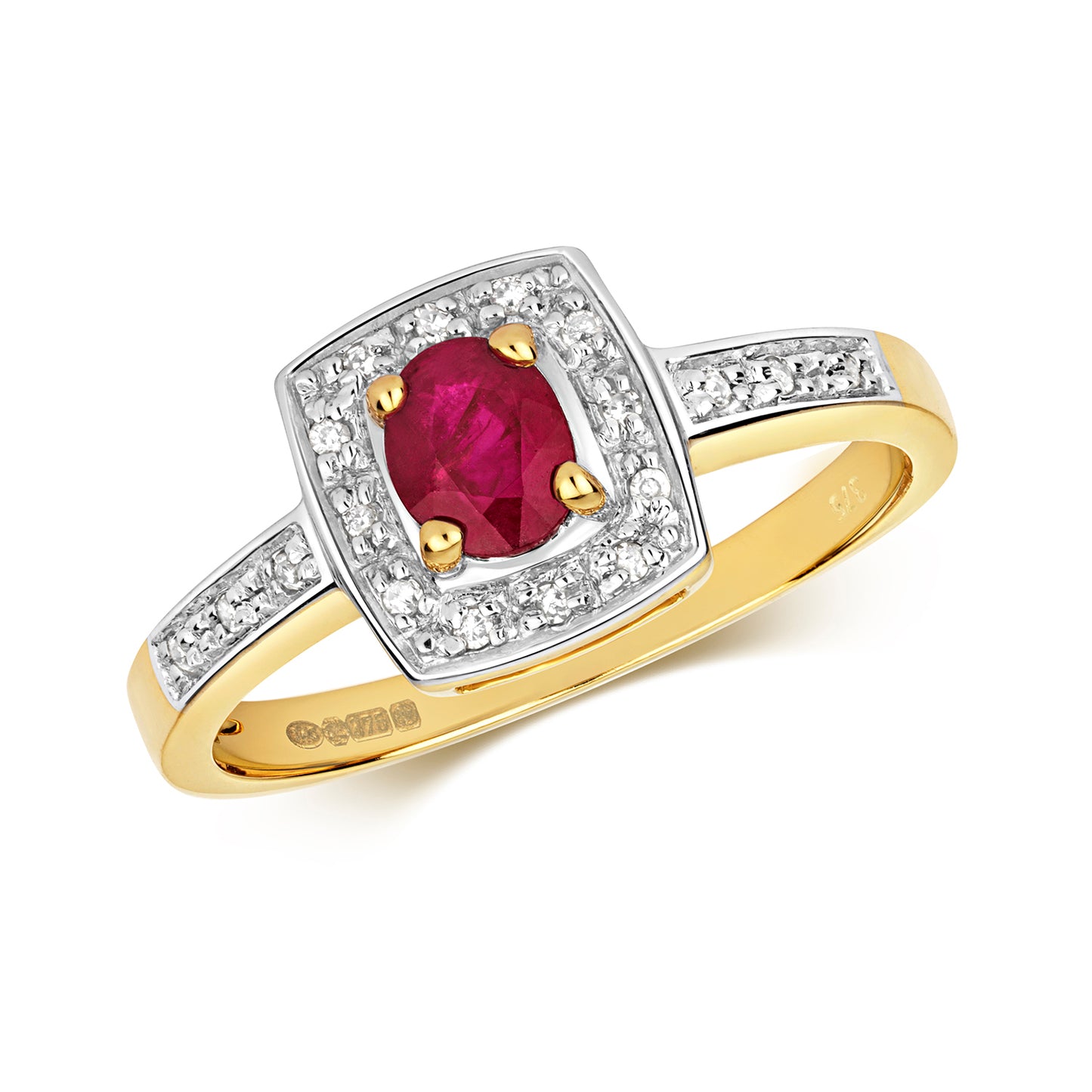 - 9ct Yellow Gold Cluster Ruby and Diamond Ring