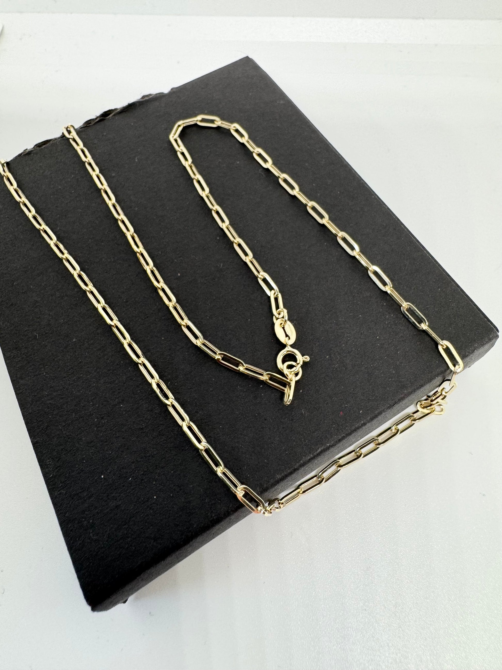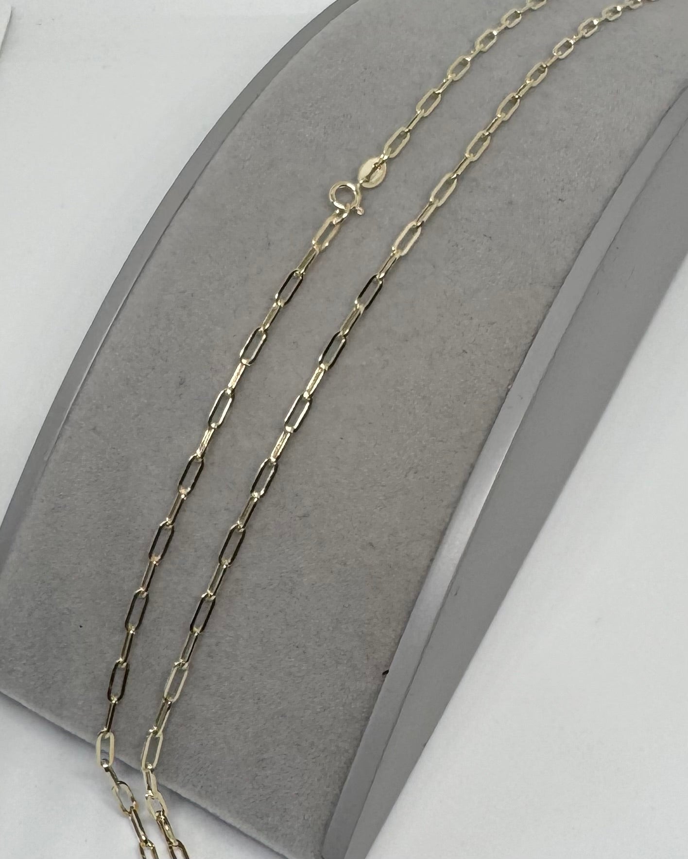 9ct Yellow Gold 2.3mm Light Hollow Paperclip Chain Various Lengths (0204)