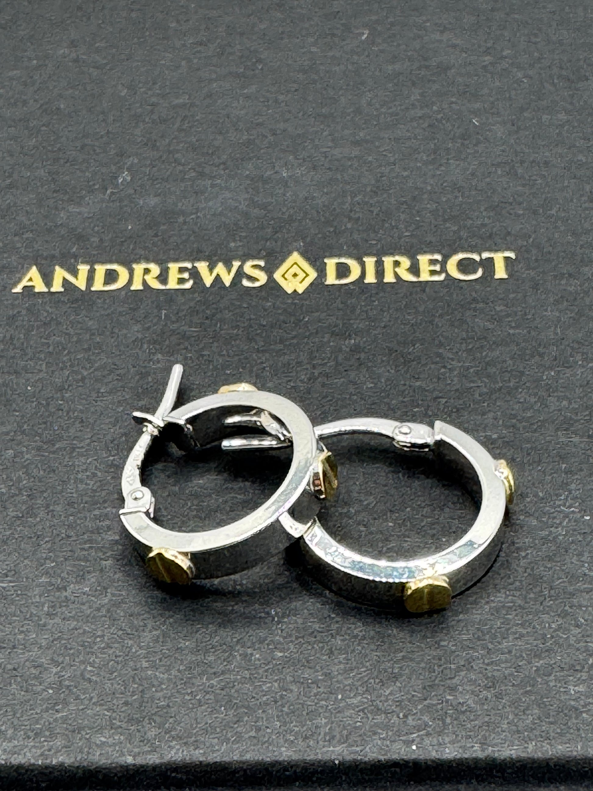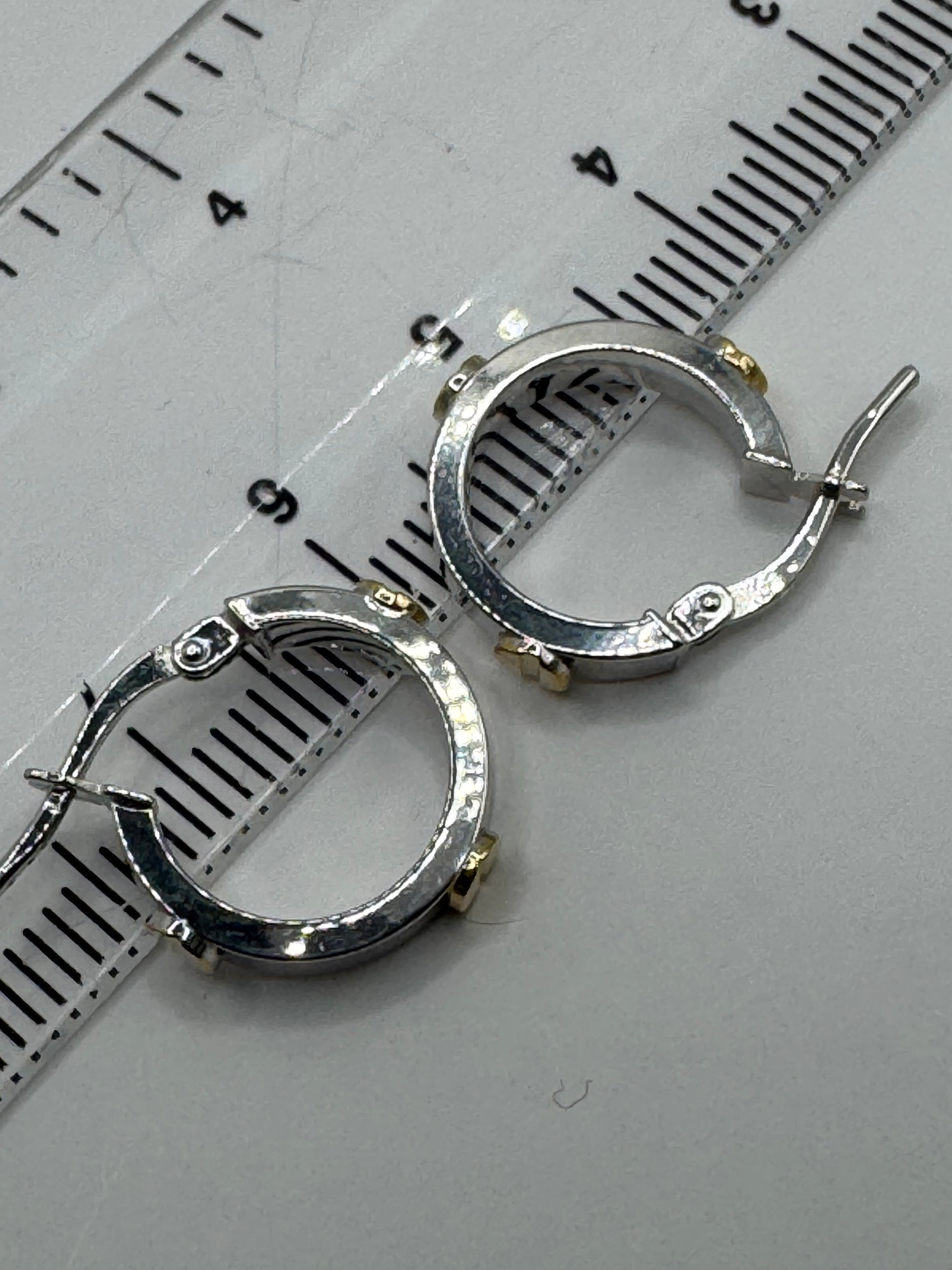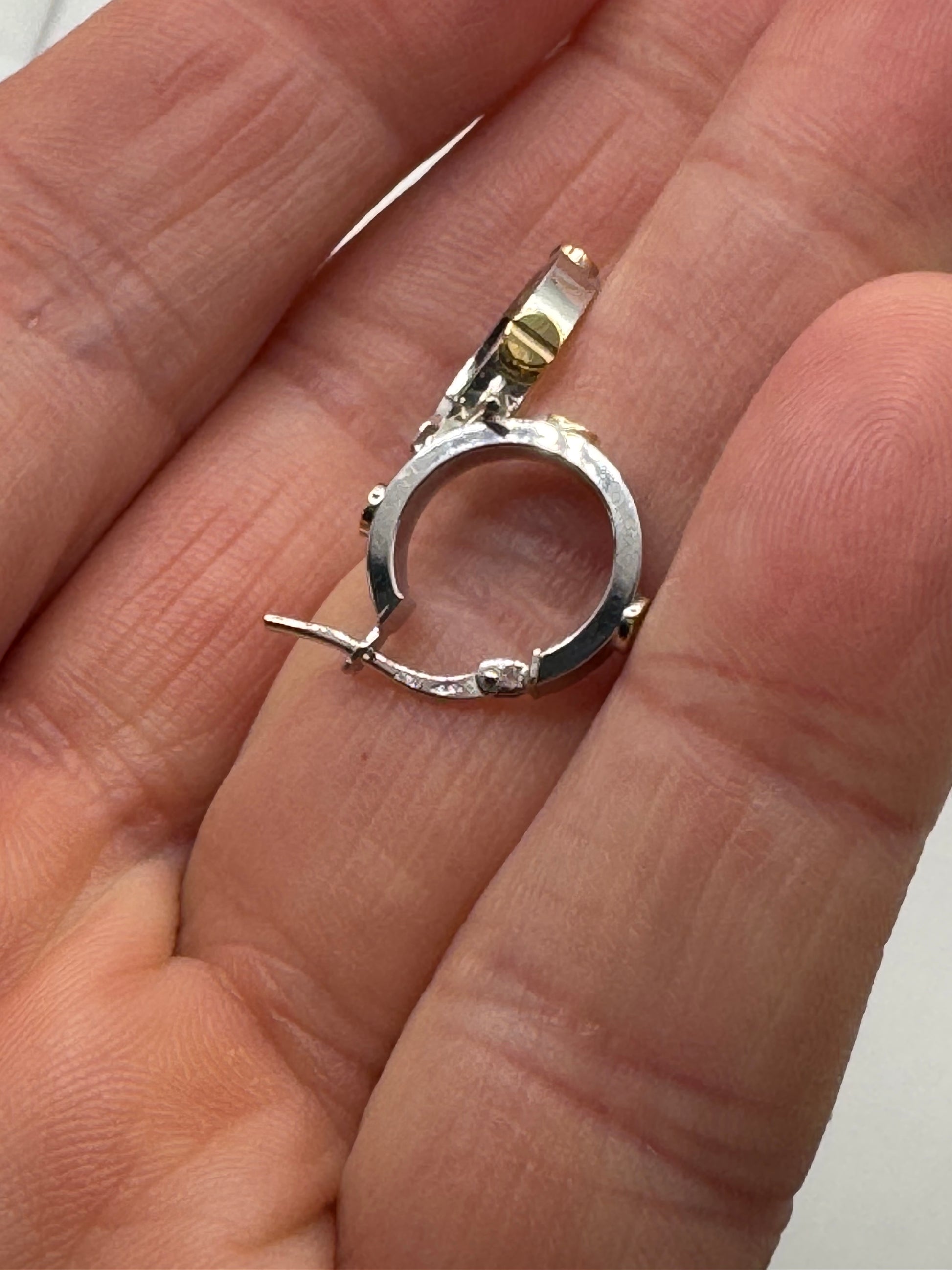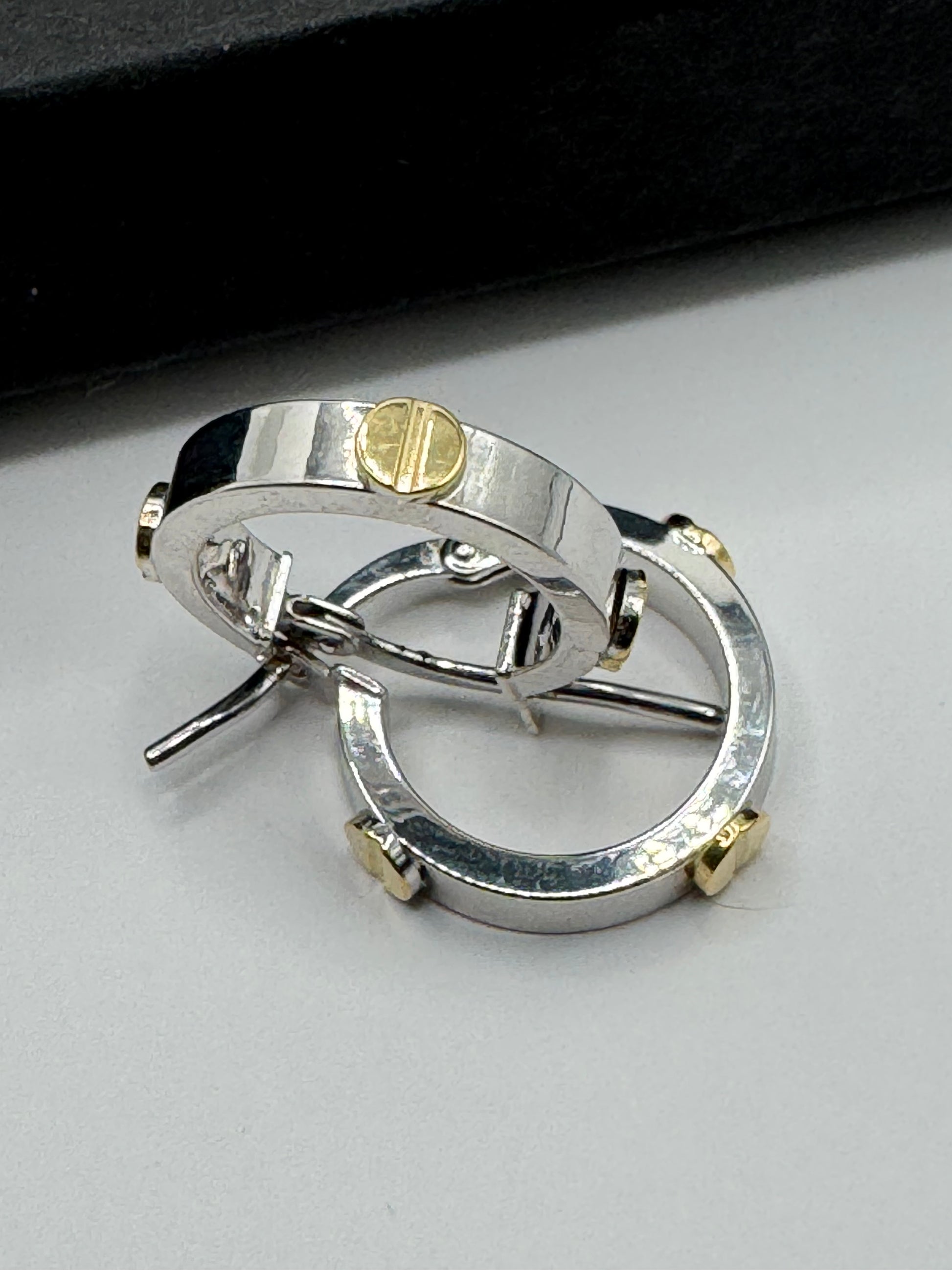 9ct White and Yellow Gold 15mm Screw Hoop Earrings (446A)