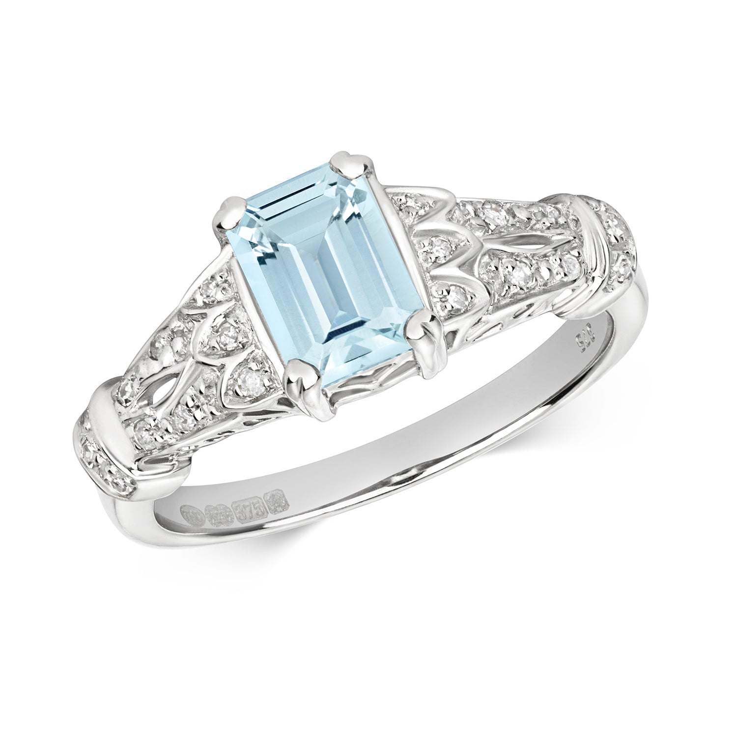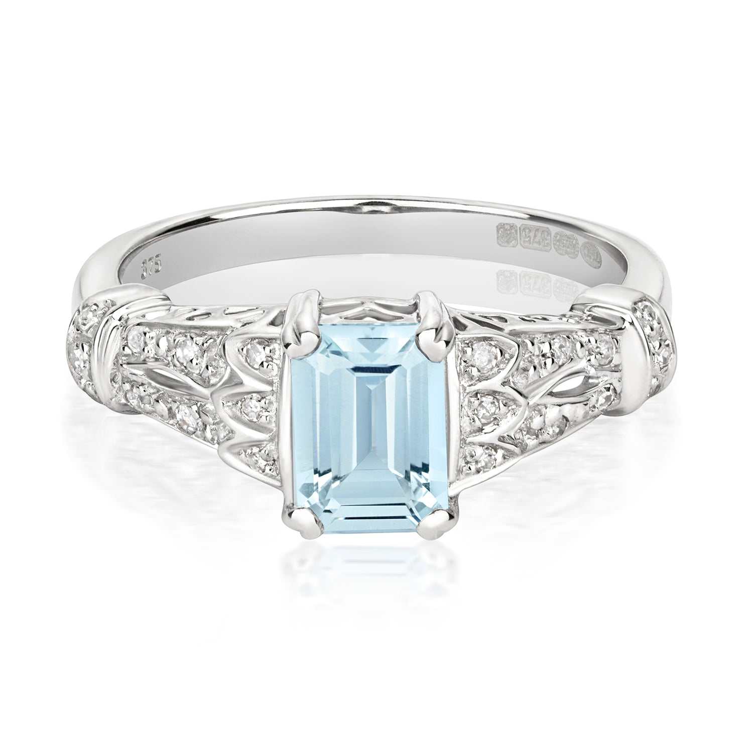 - 9ct White Gold Natural Aquamarine and Diamond Ring