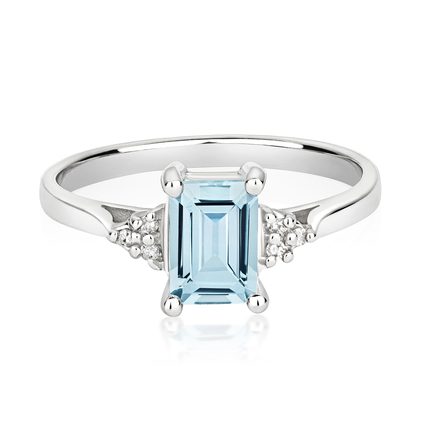 - 9ct White Gold Natural Aquamarine and Diamond Ring