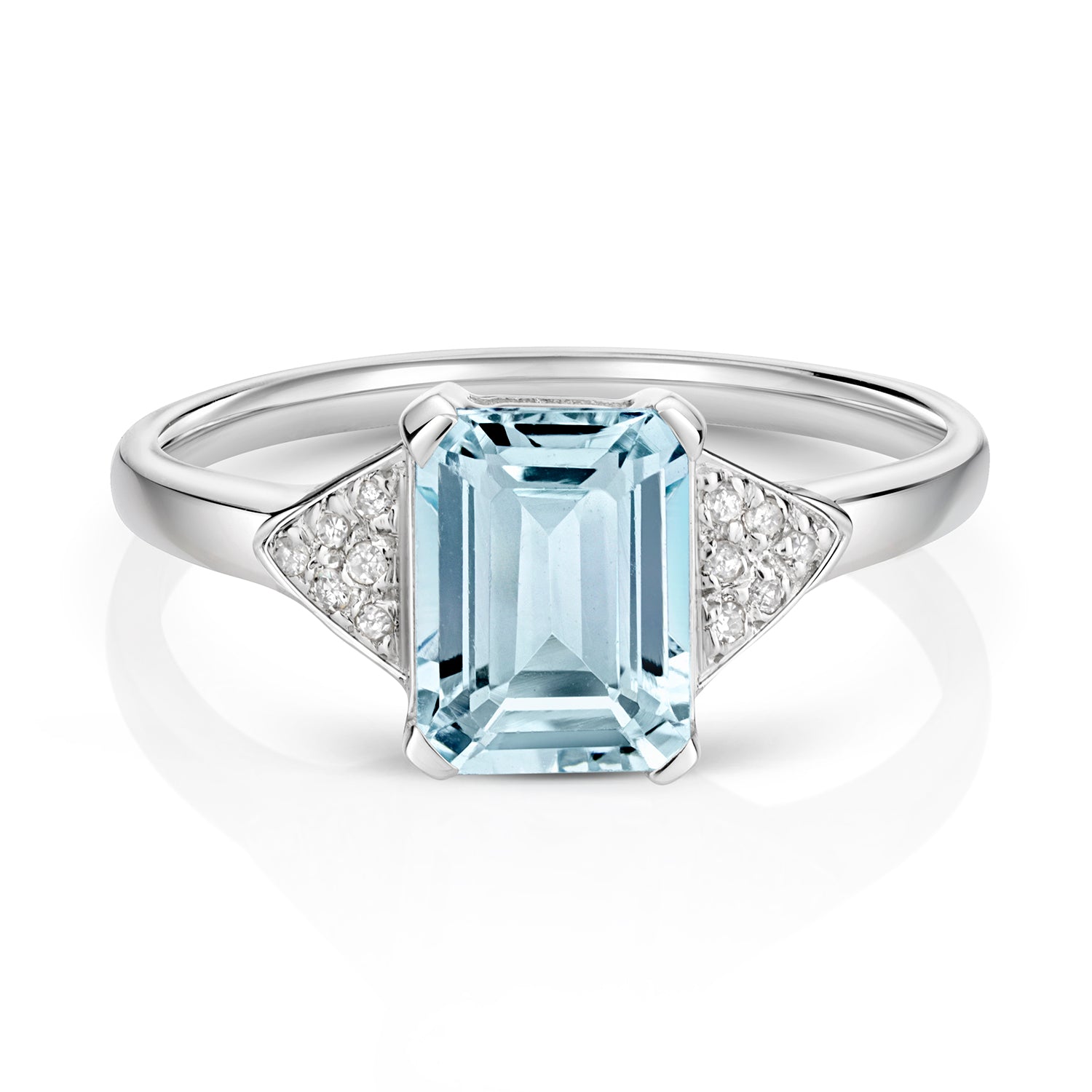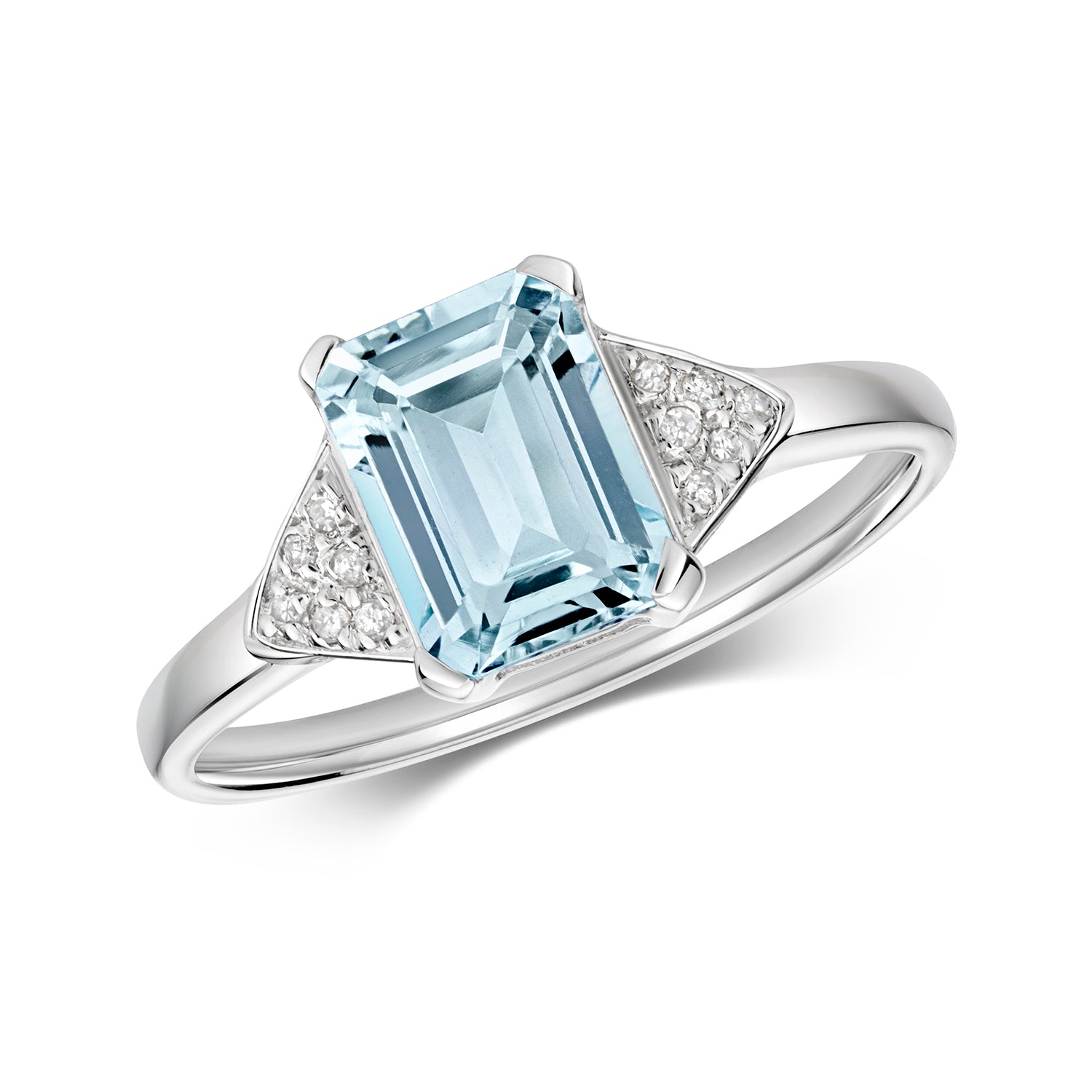 - 9ct White Gold Natural Aquamarine and Diamond Ring