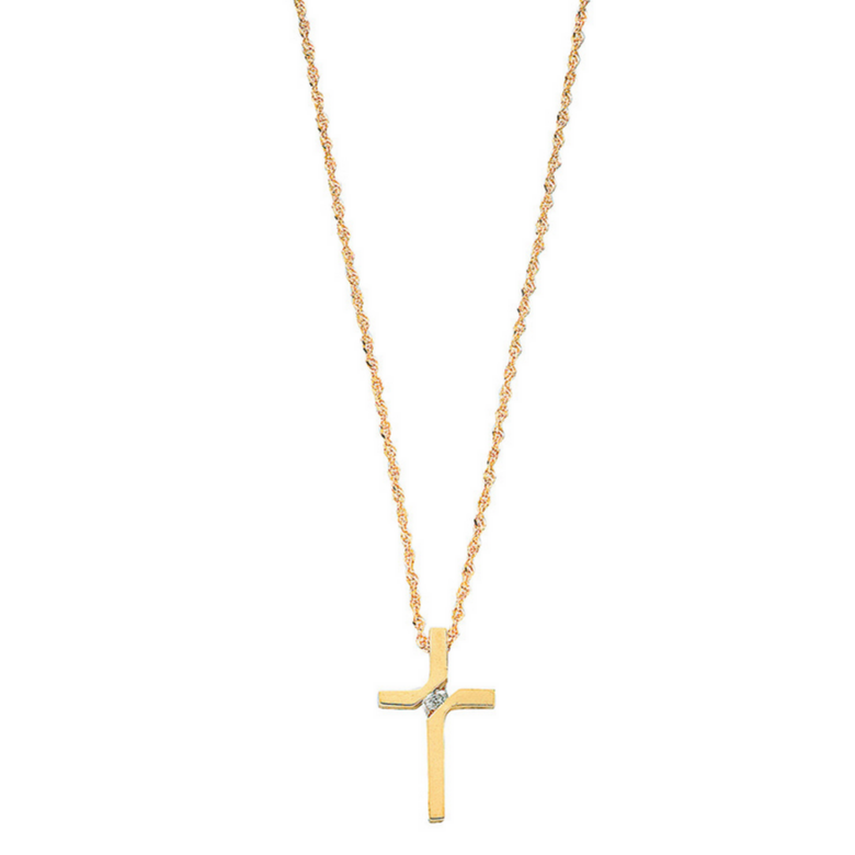 9ct Yellow Gold 0.04ct Diamond Set Cross Pendant on 18" Chain (0022)