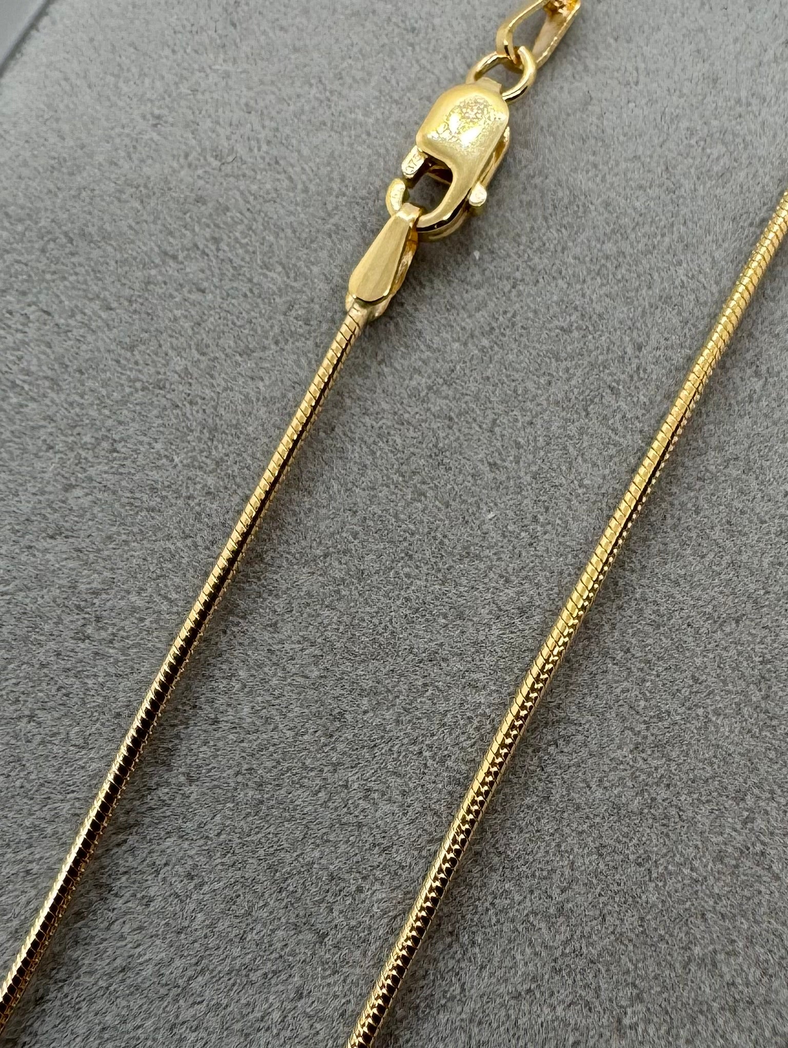 9ct Yellow Gold 1 Round Snake Chain Lobster Clasp Various Lengths (0232)