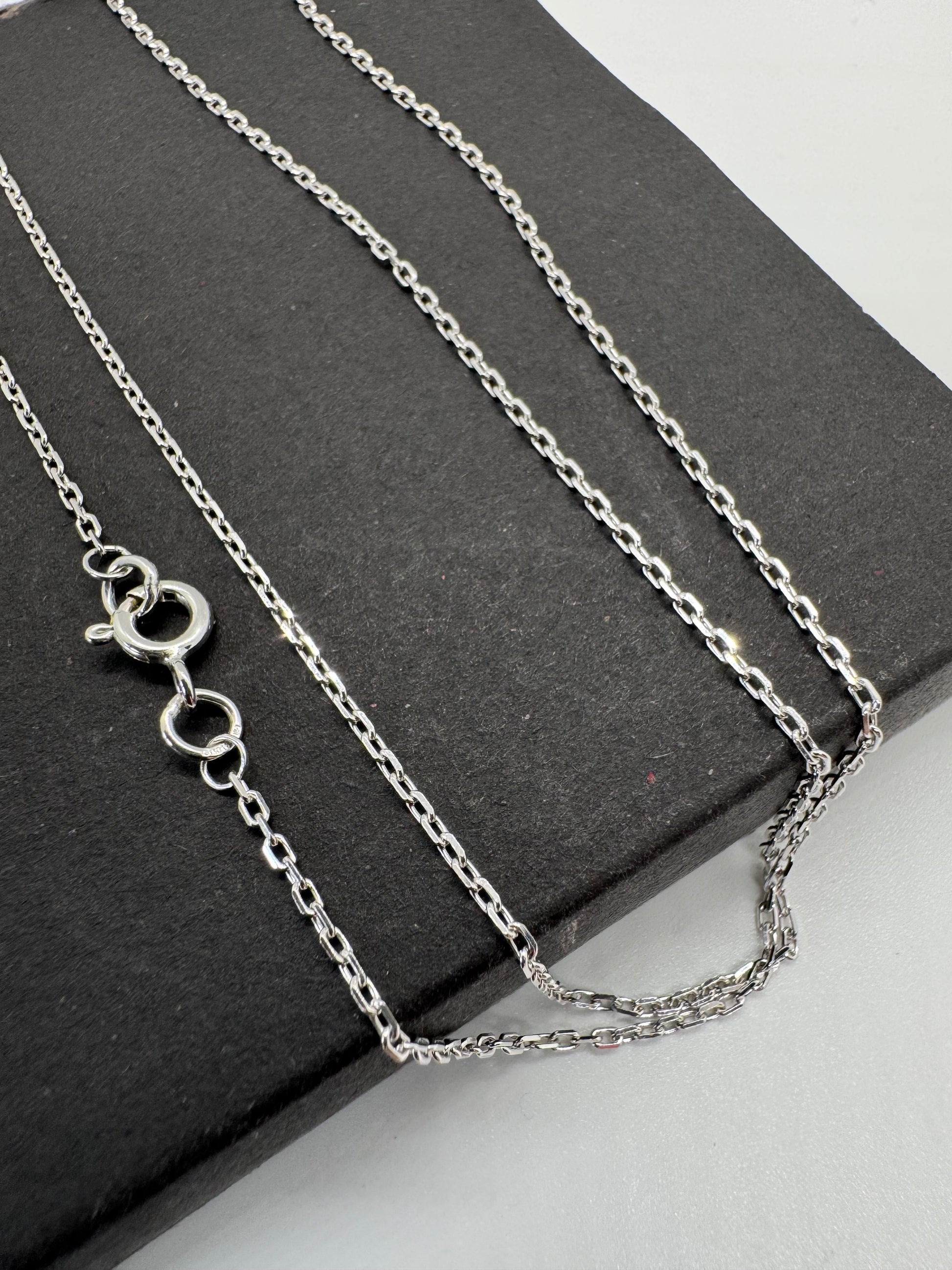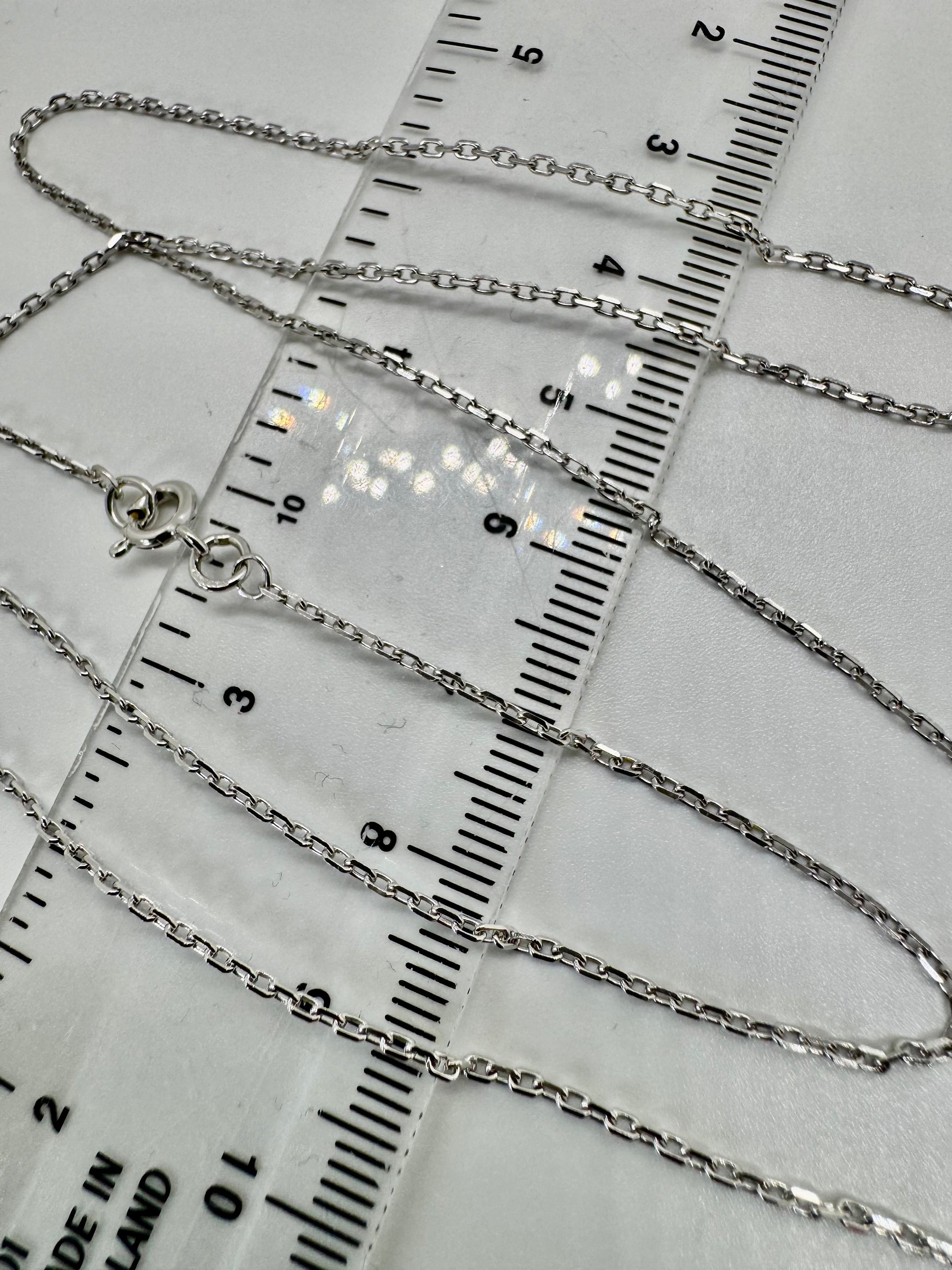 9ct White Gold 1.34mm Trace Diamond Cut Oval Link Chain Various Lengths (W40AFT)
