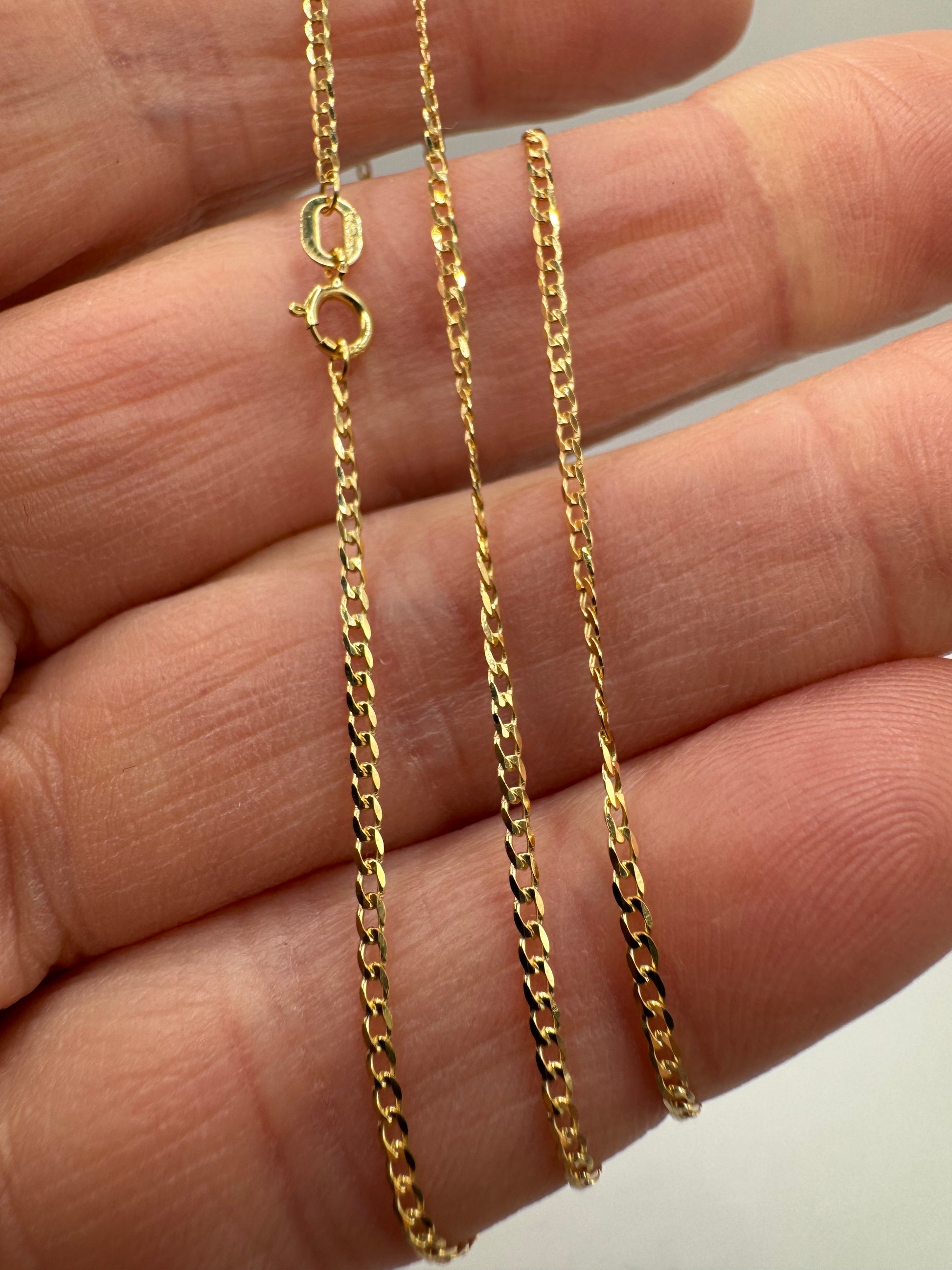 9ct Yellow Gold 1.5mm Flat Diamond Cut Curb Chain (076A)