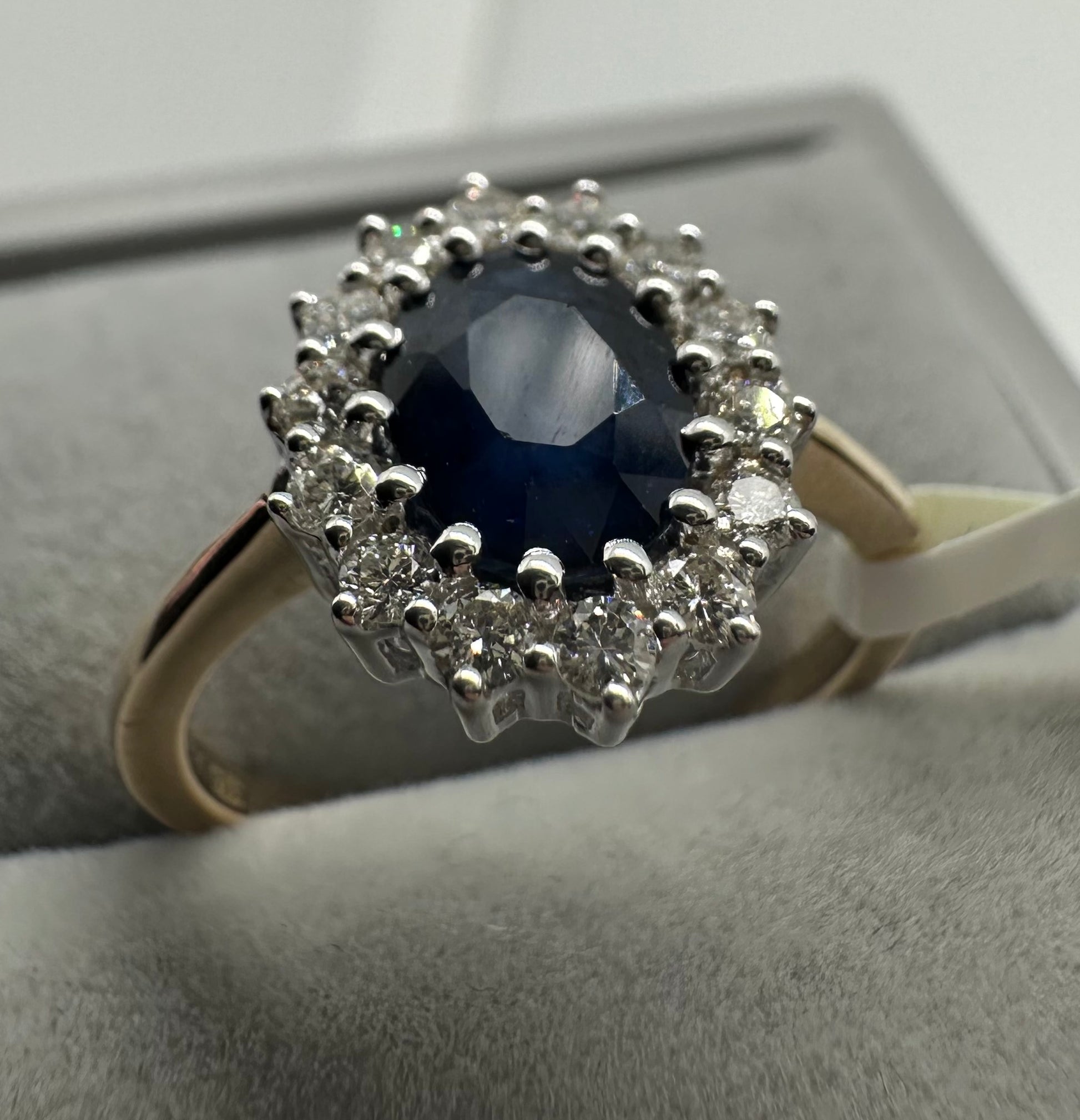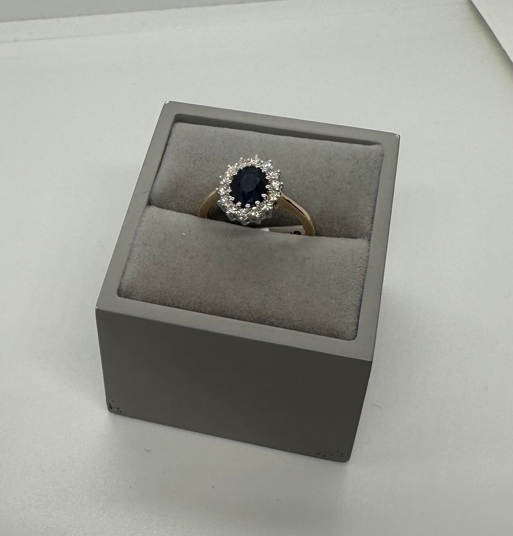 - 9ct Yellow Gold 1.80Ct Sapphire and Diamond Cluster Ring