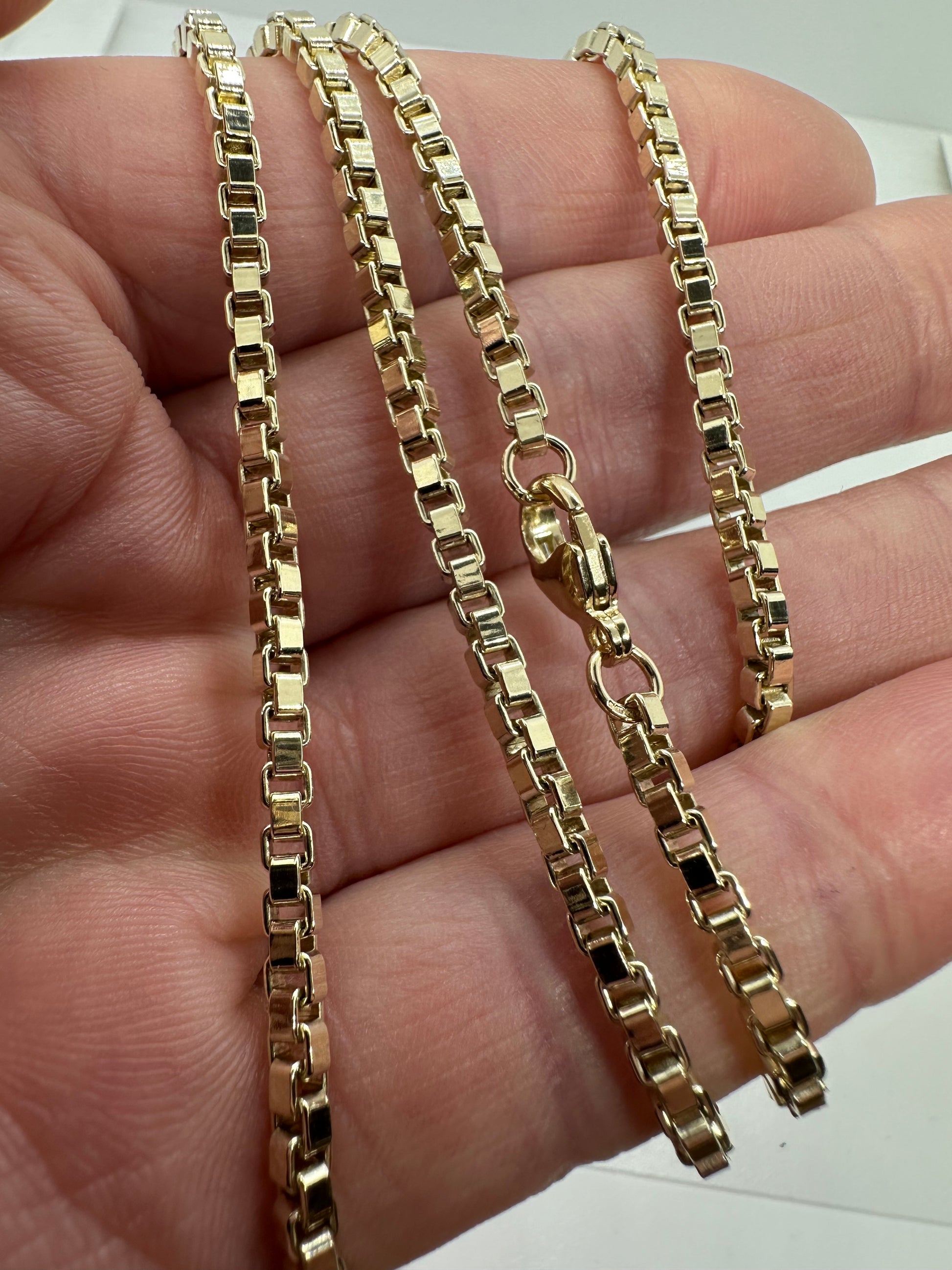 - 9ct Yellow Gold 2.6mm Solid Box Venetian Link Chain