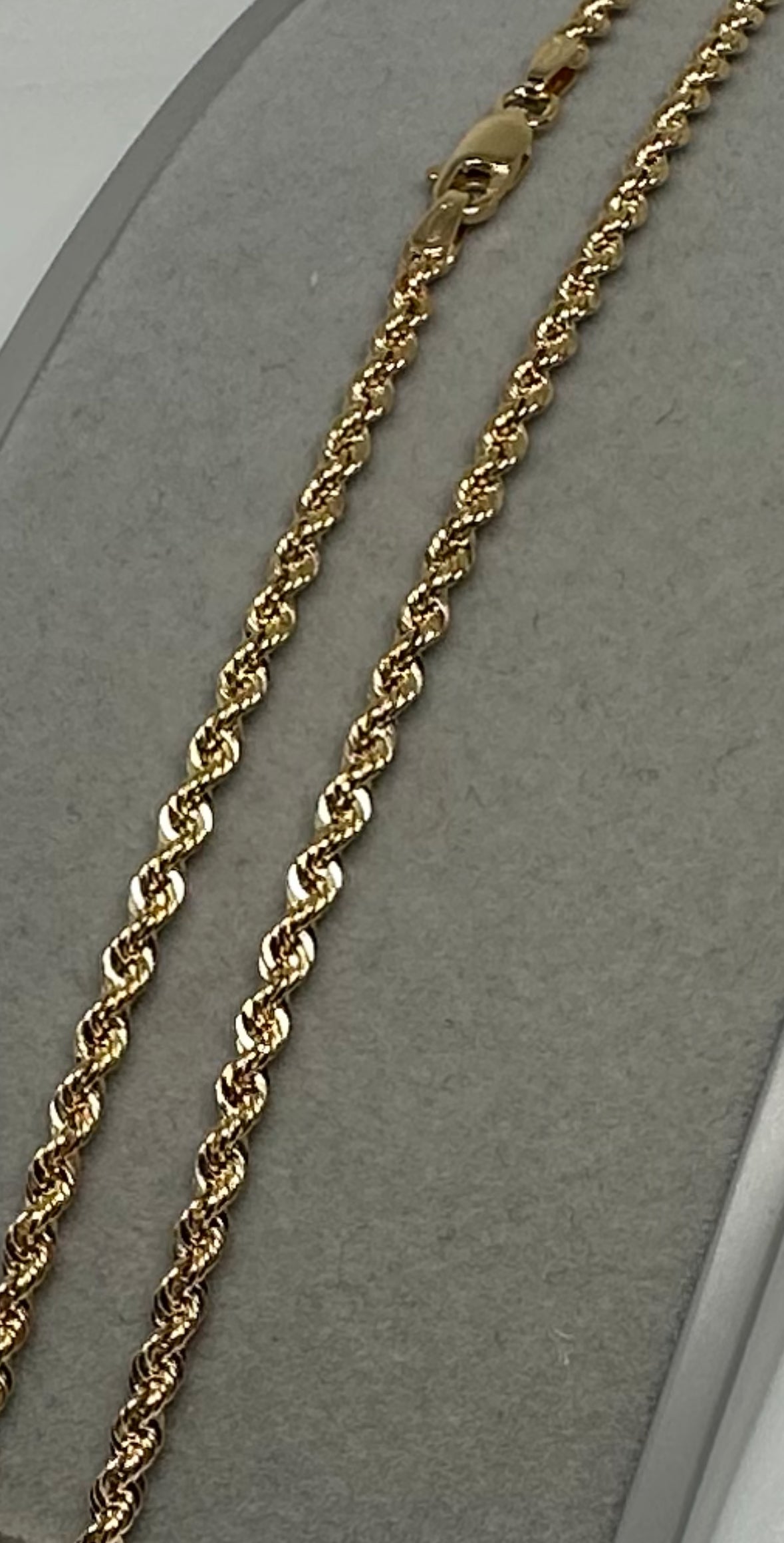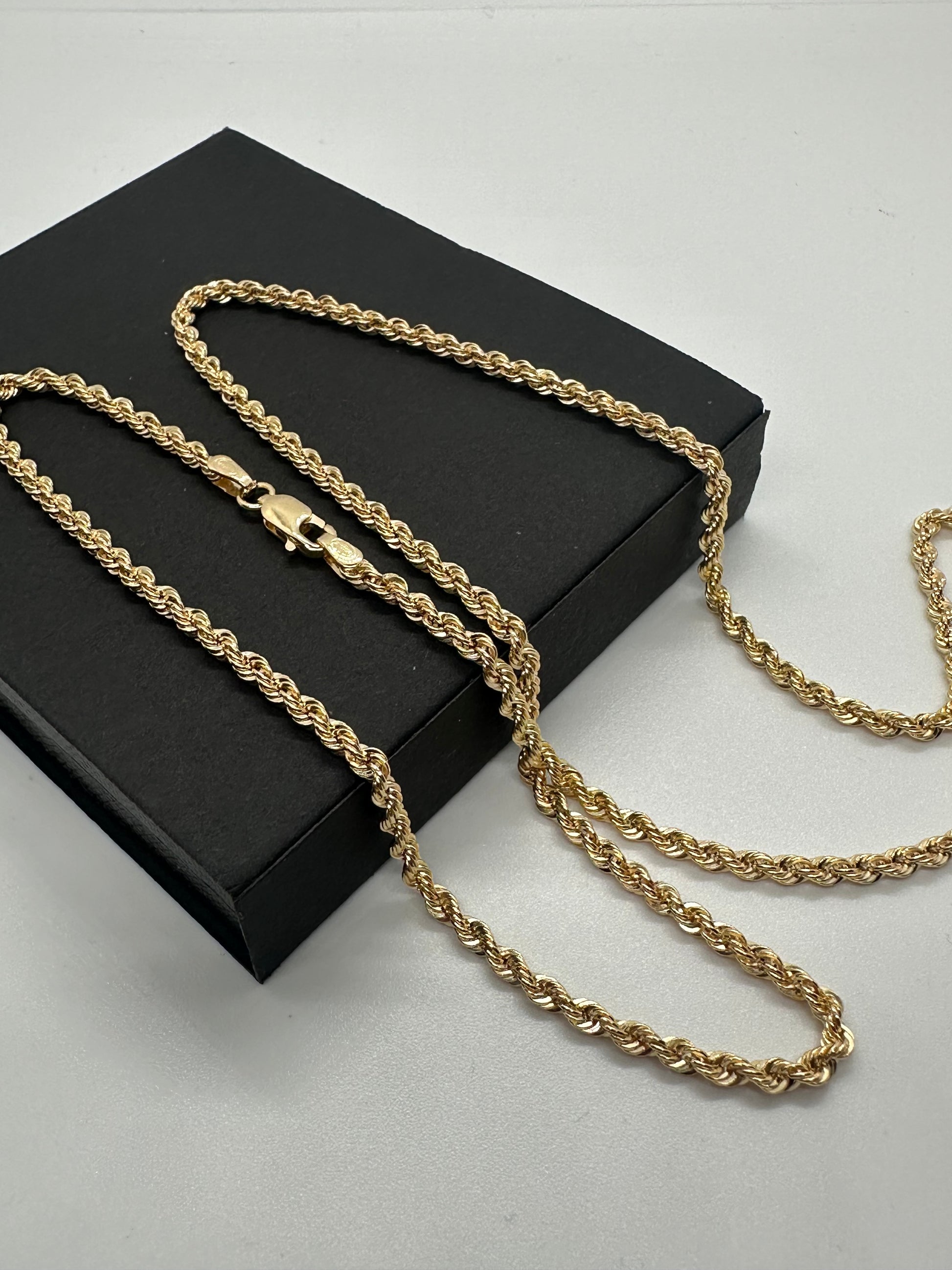- 9ct Yellow Gold Hollow Rope Neck Chain