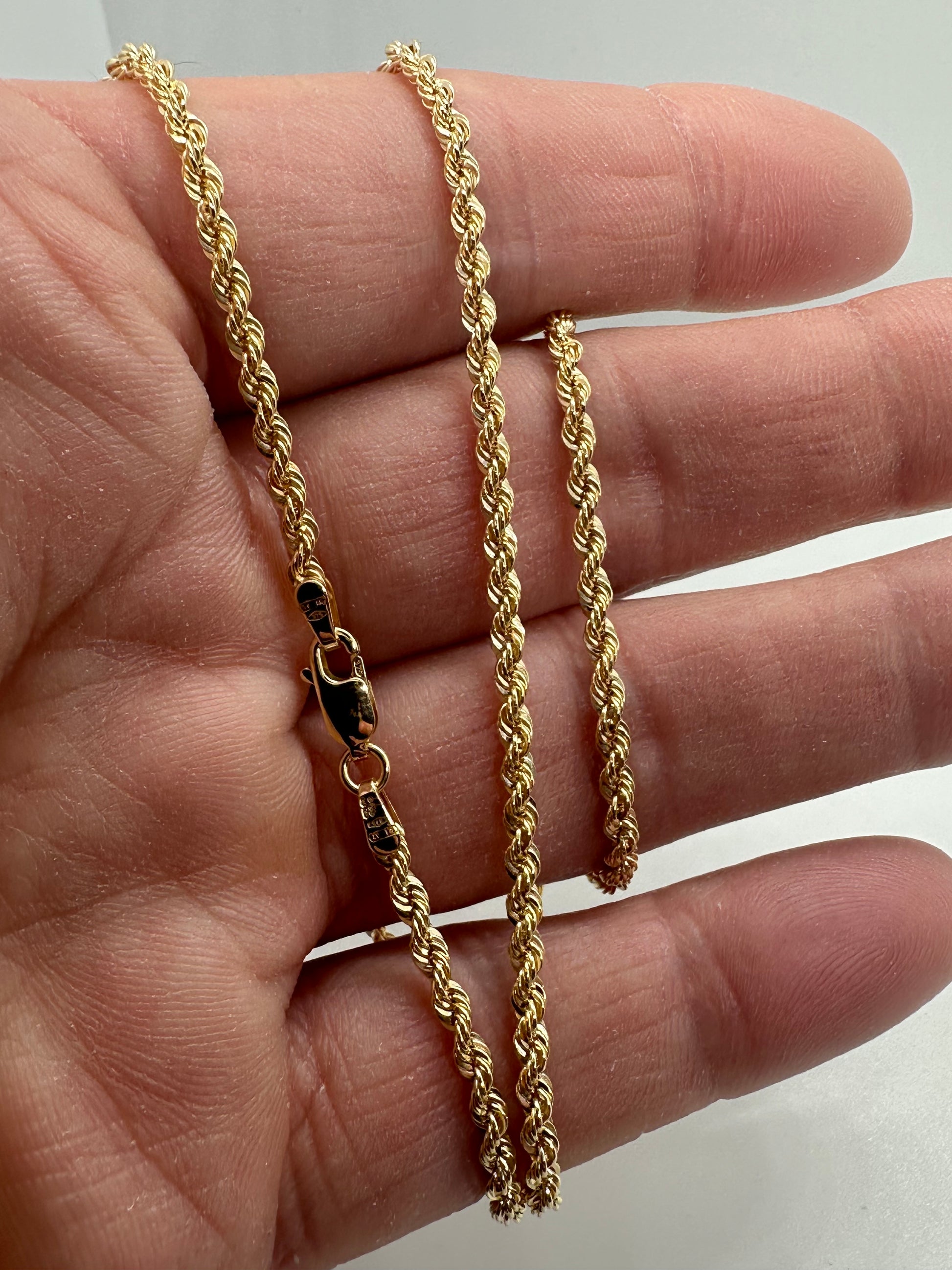 9ct Yellow Gold 2.7mm Hollow Rope Chain Various Lengths (0136)