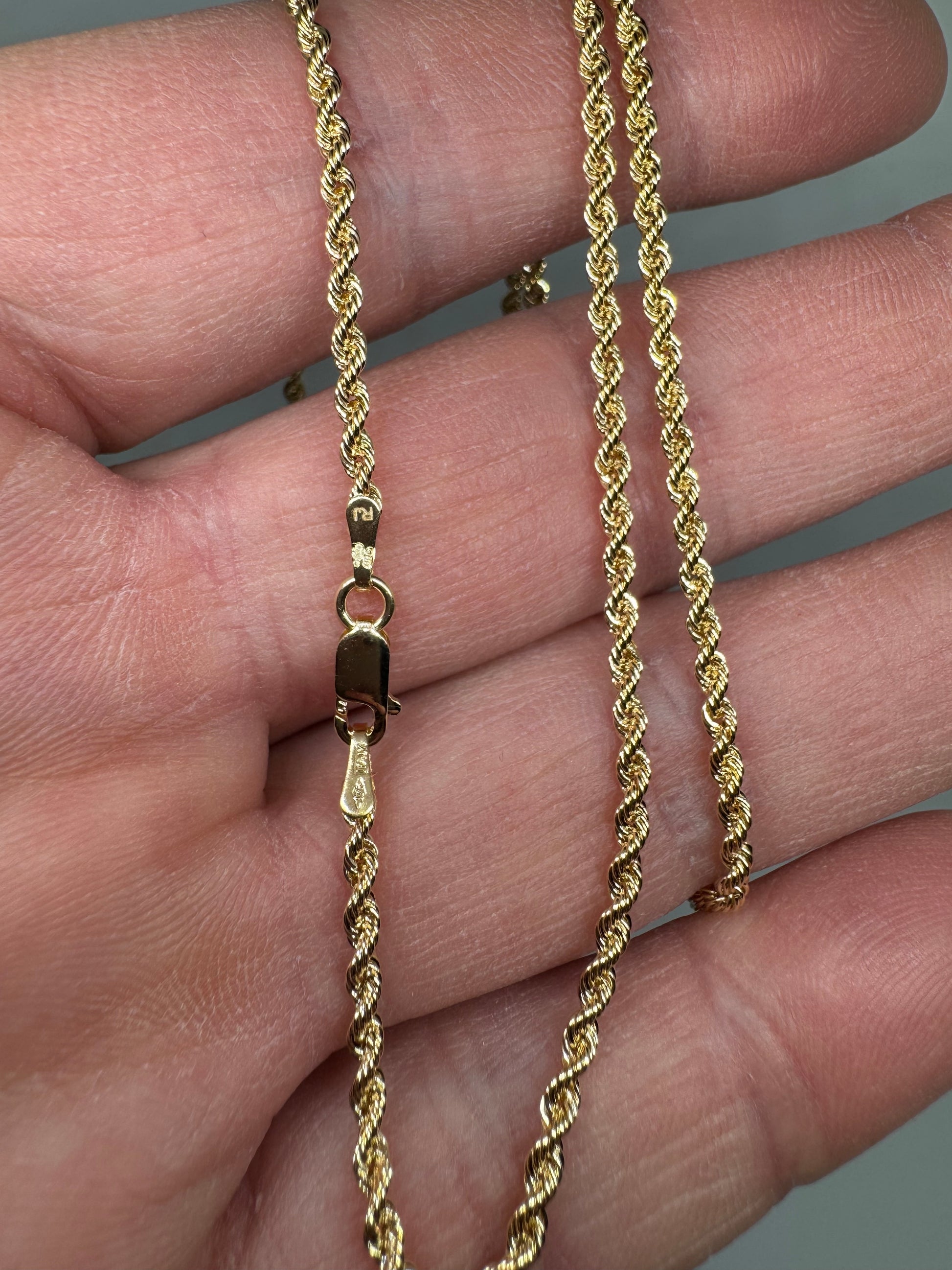 9ct Yellow Gold 2mm Width Hollow Diamond Cut Rope Chain (325B)