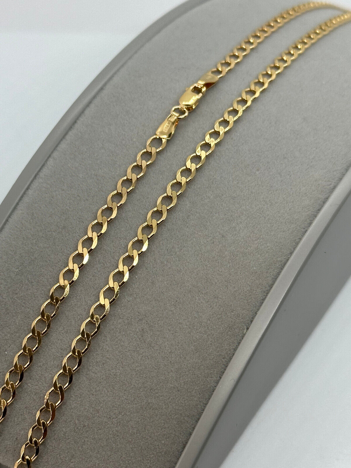 9ct Yellow Gold 3.5mm Solid Flat Curb Neck Chain Various Lengths (0042)