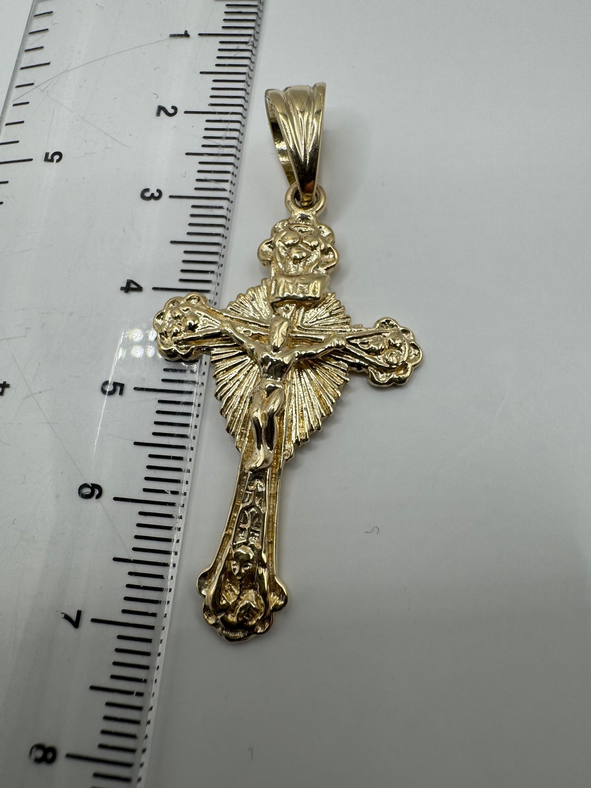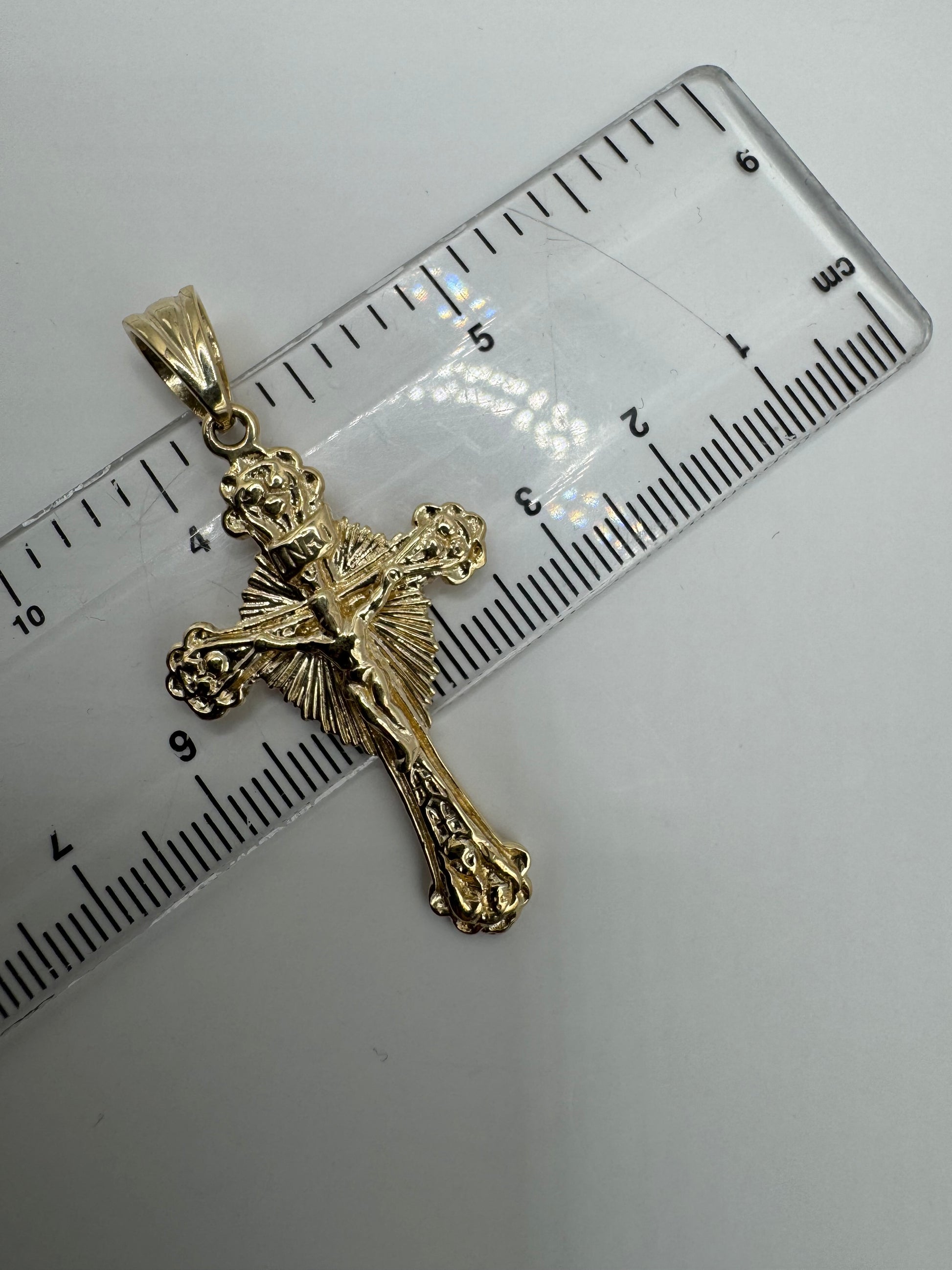 9ct Yellow Gold 49x25mm Solid Crucifix Sunburst Pendant (0053)