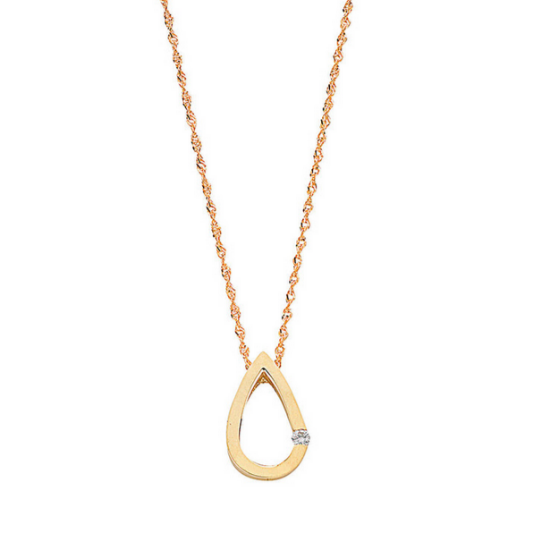 - 9ct Yellow Gold Diamond Drop Shaped Pendant Necklace