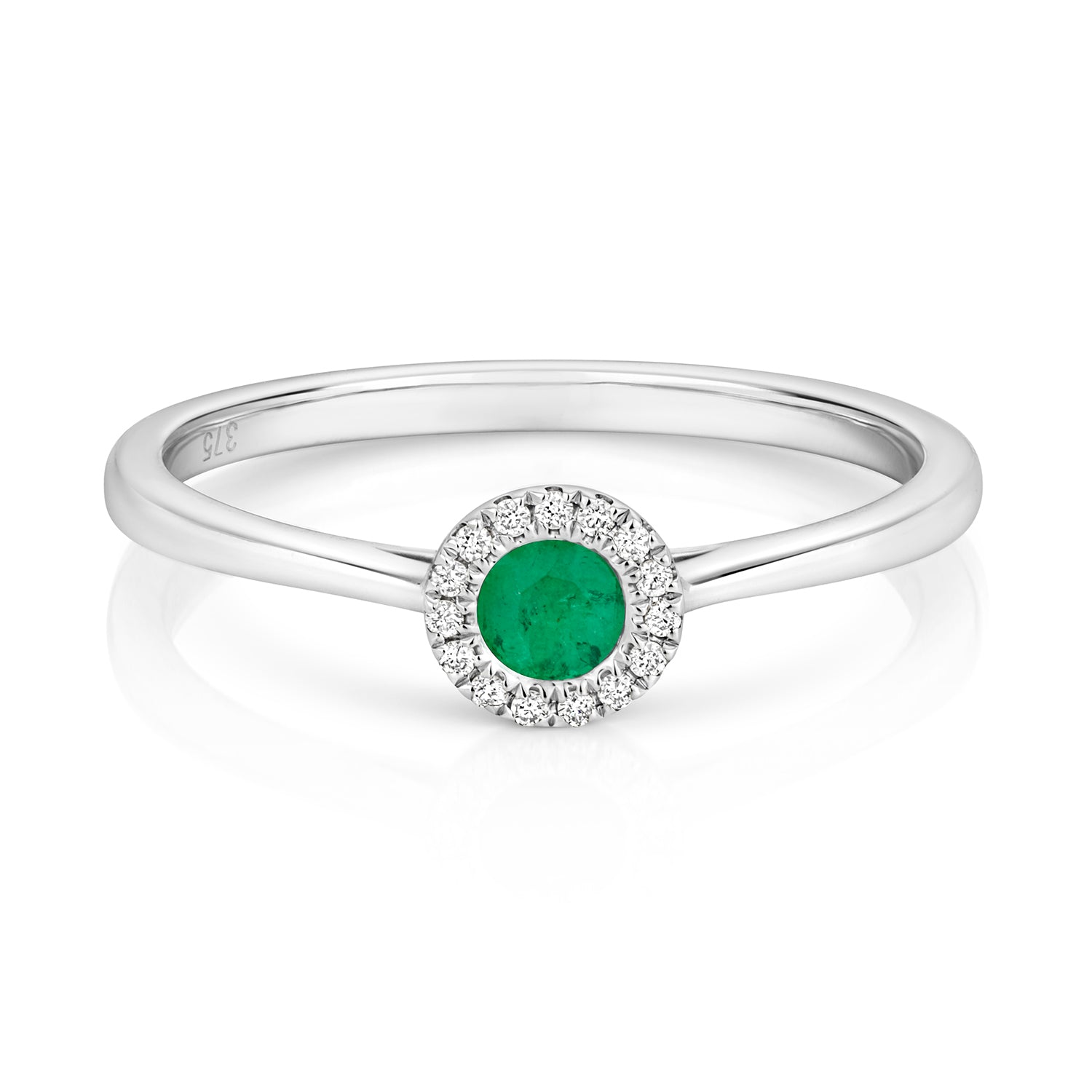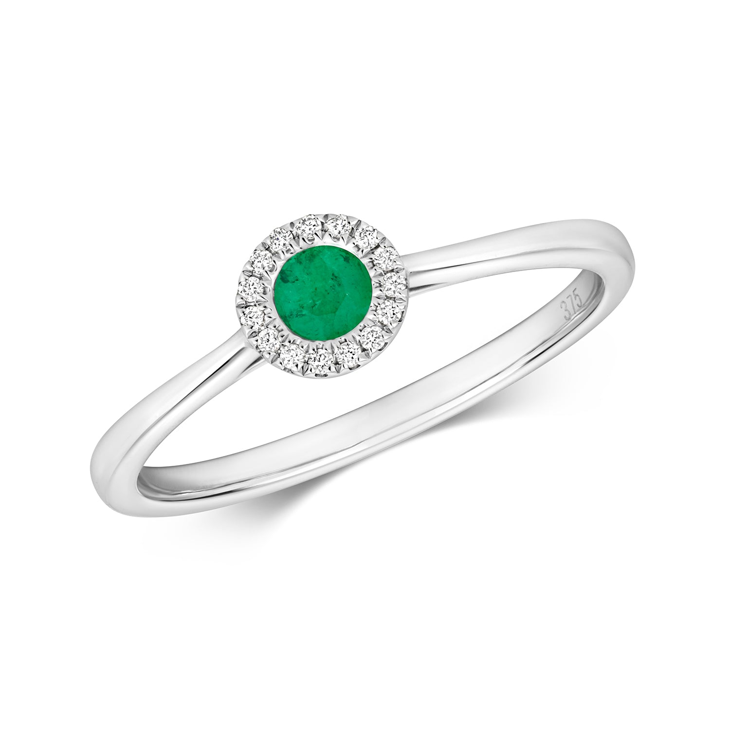 9ct White Gold Emerald and Diamond Cluster Round Ring, Sizes J to Q (931E)