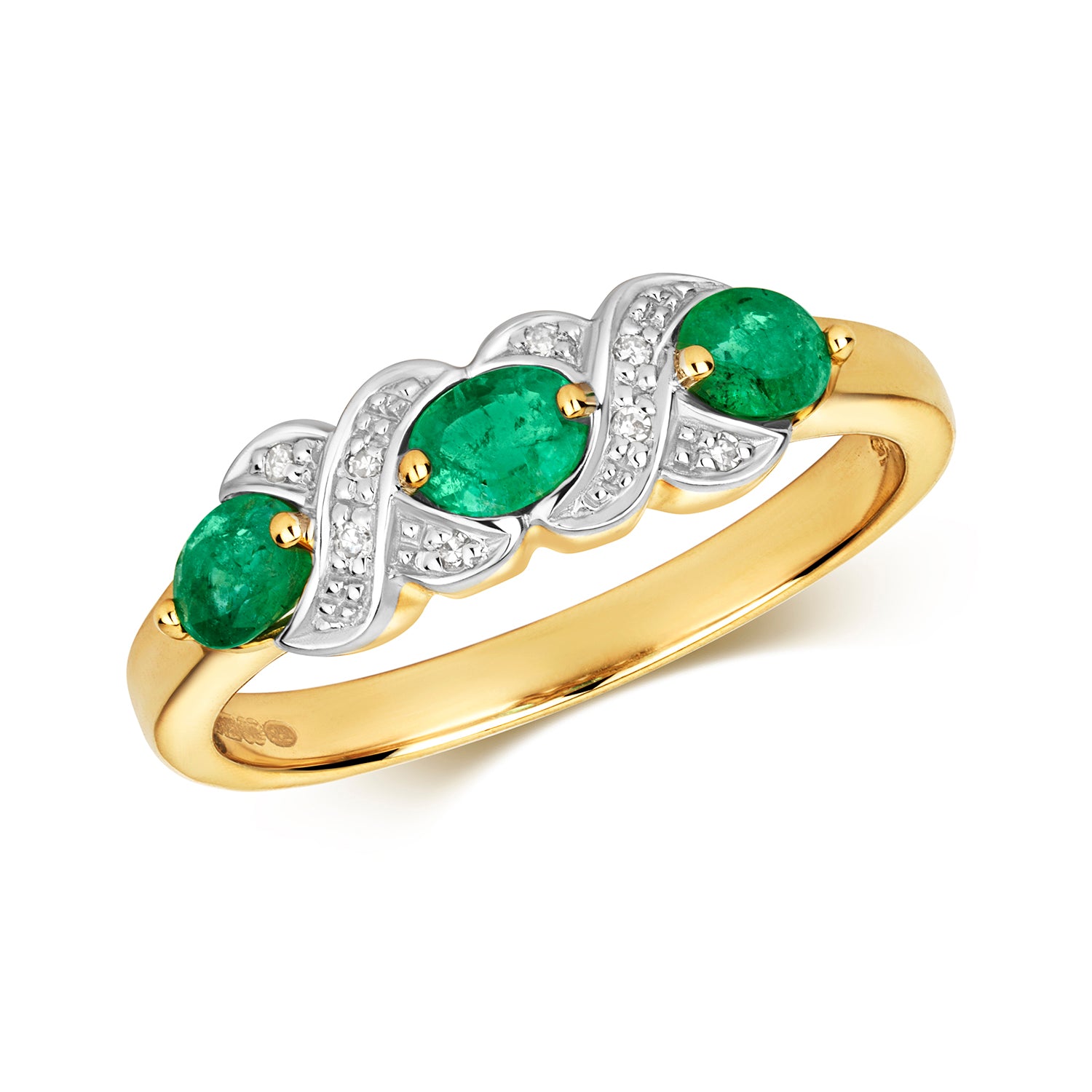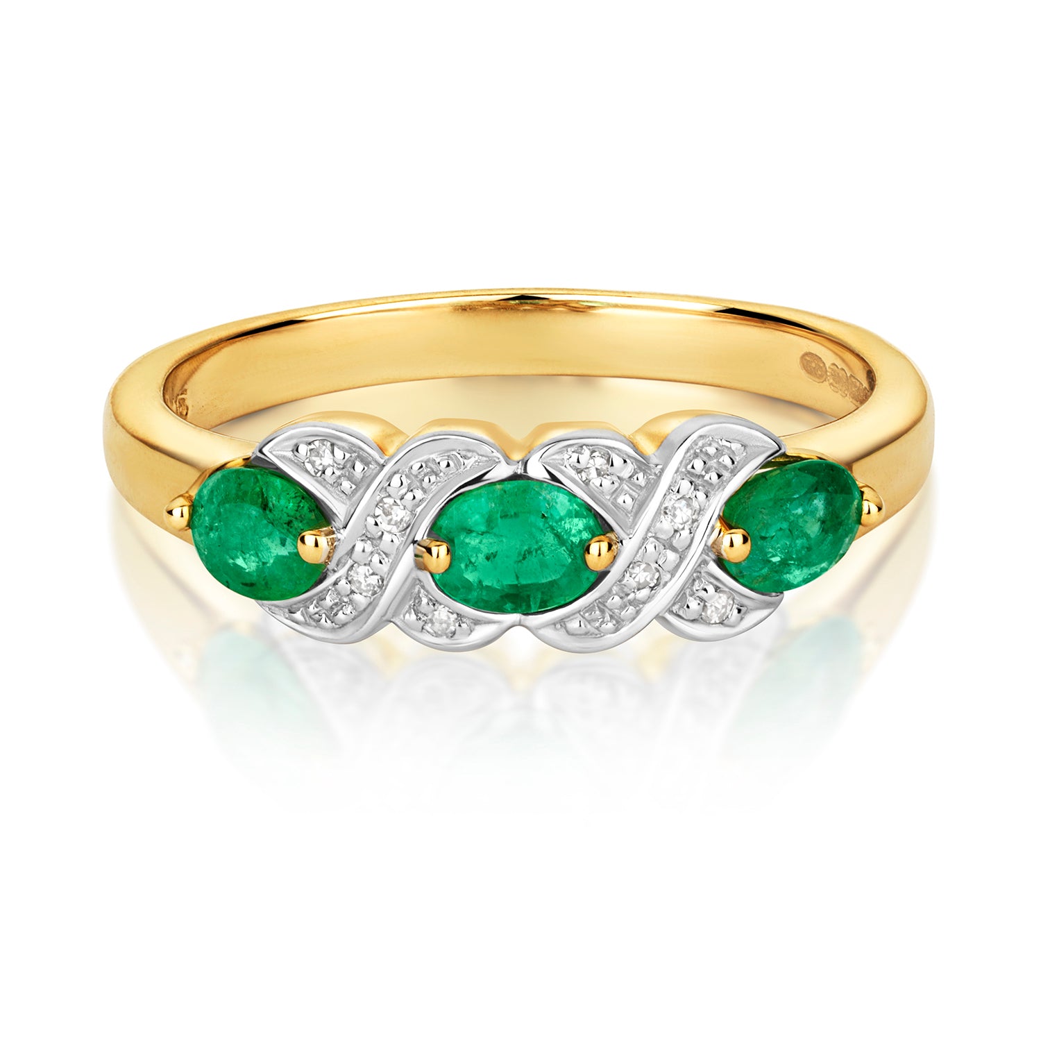 - 9ct Yellow Gold Emerald and Diamond Loving Kisses Ring