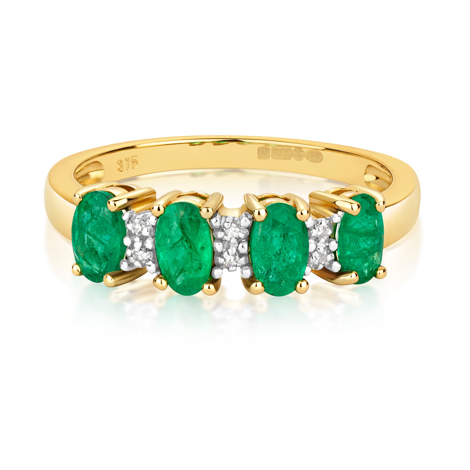 - 9ct Yellow Gold Emerald and Diamond Eternity Style Ring