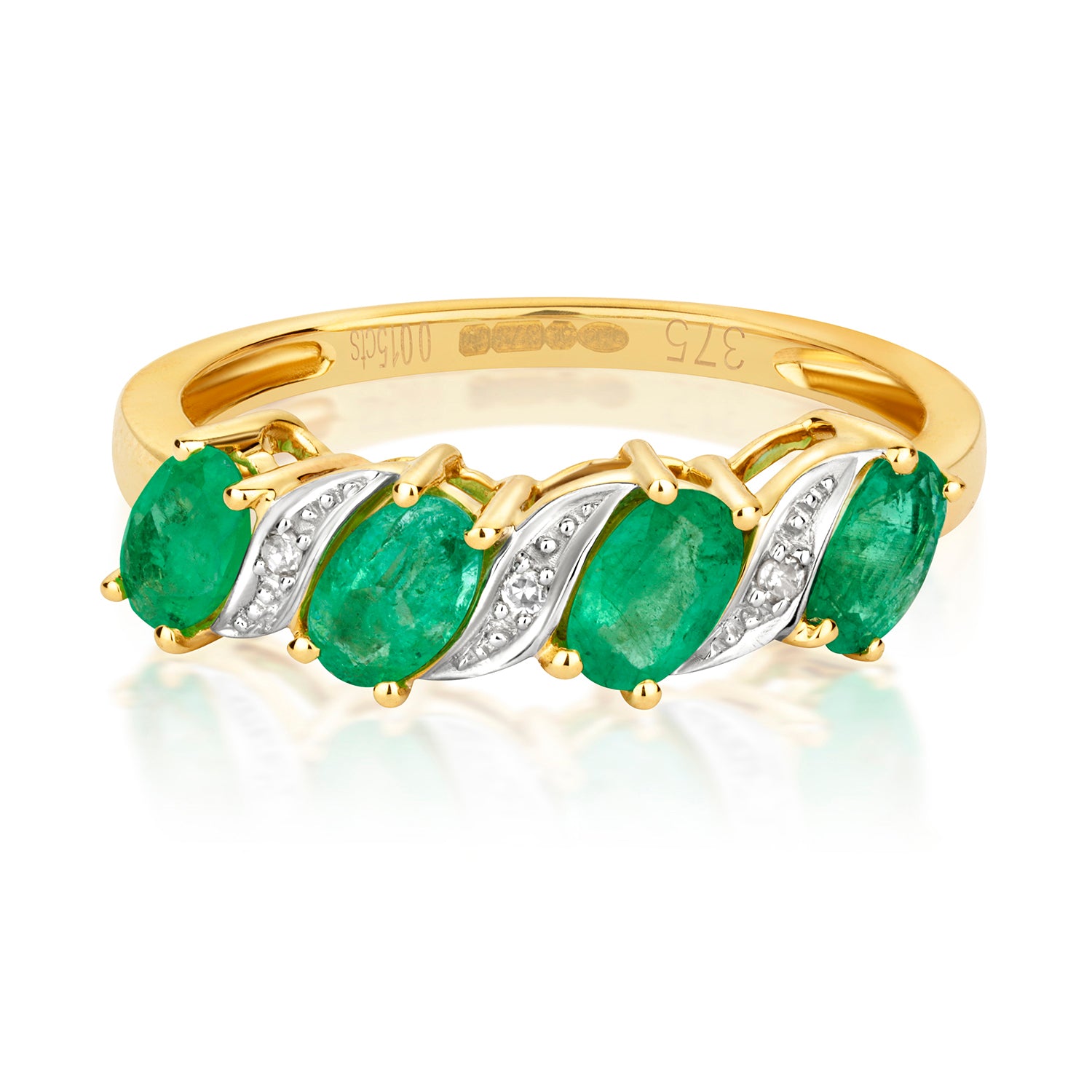 - 9ct Yellow Gold Emerald and Diamond Cocktail / Eternity Ring