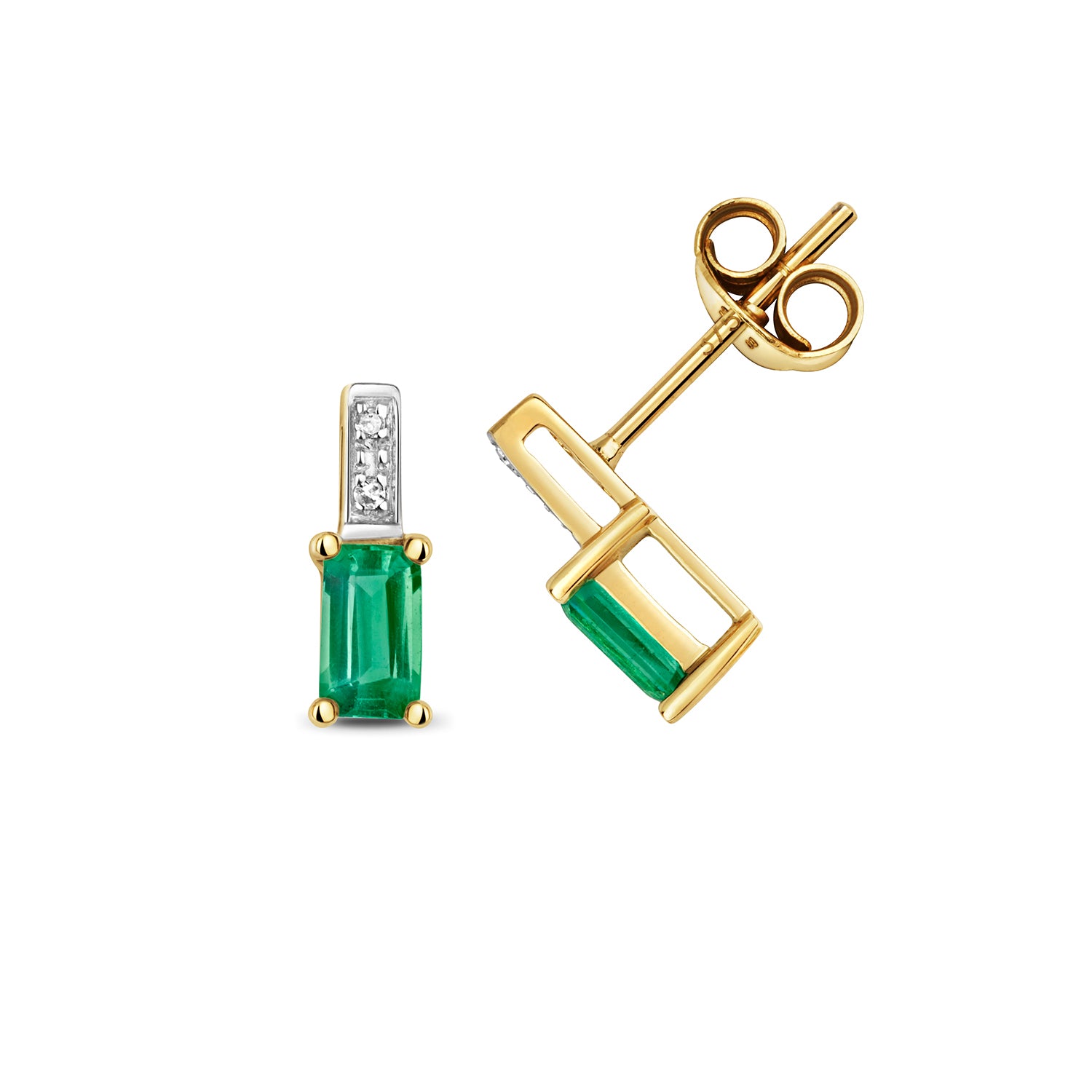 - 9ct Yellow Gold Emerald and Diamond Earrings
