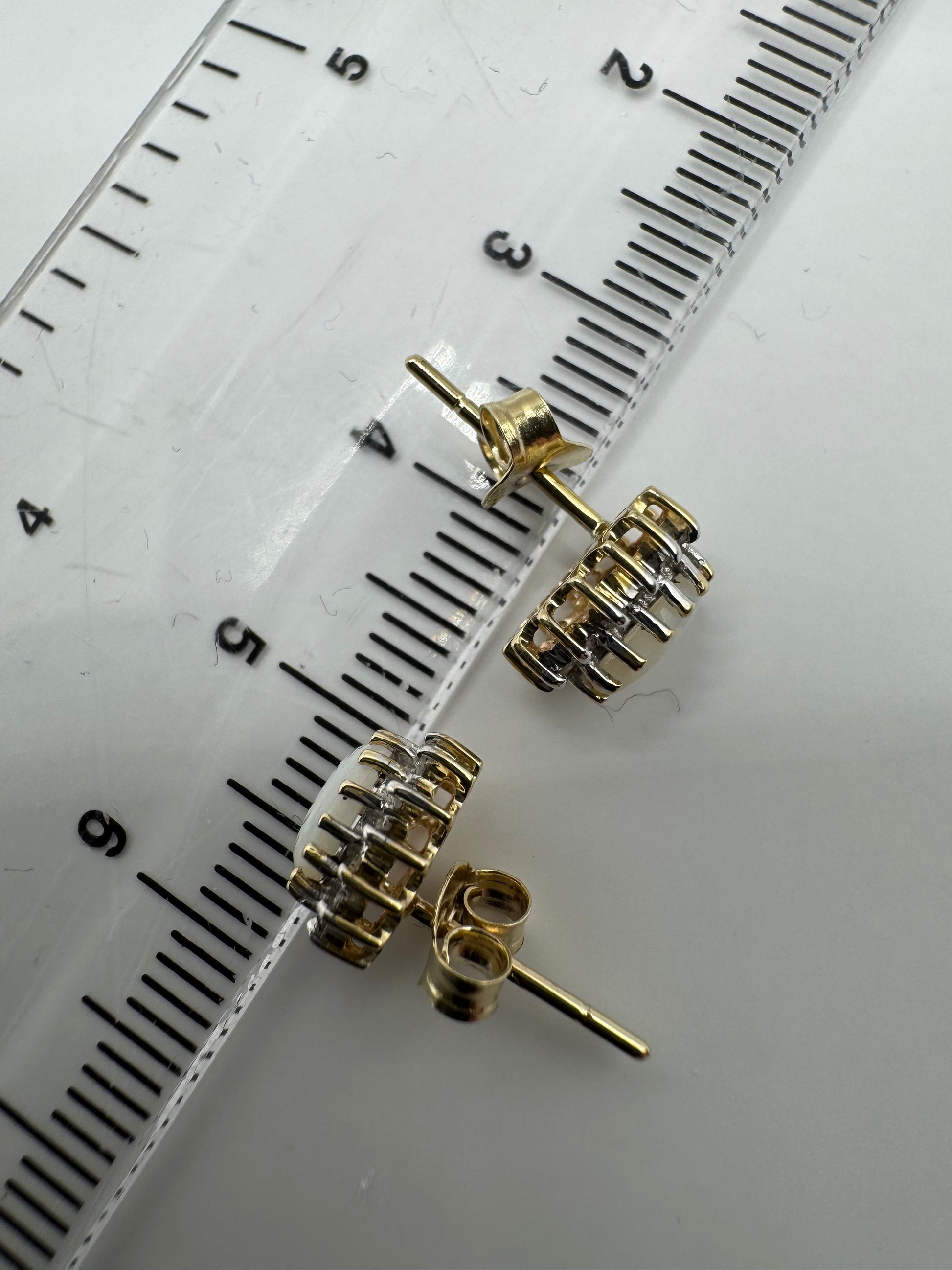 9ct Yellow Gold Natural Opal and Diamond Cluster Stud Earrings (293O)
