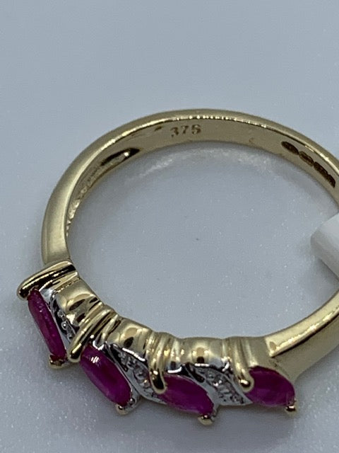 9ct Yellow Gold Marquise Ruby Gemstone and Diamond Ring, Sizes J to Q (465)