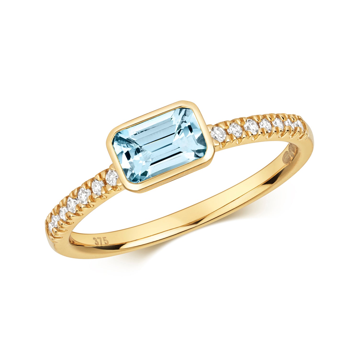 - 9ct Yellow Gold Natural Aquamarine and Diamond Ring