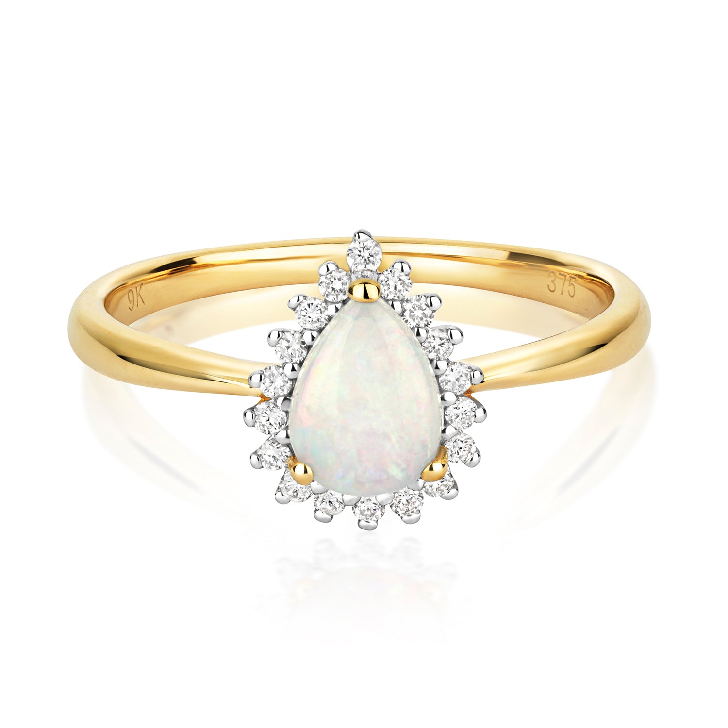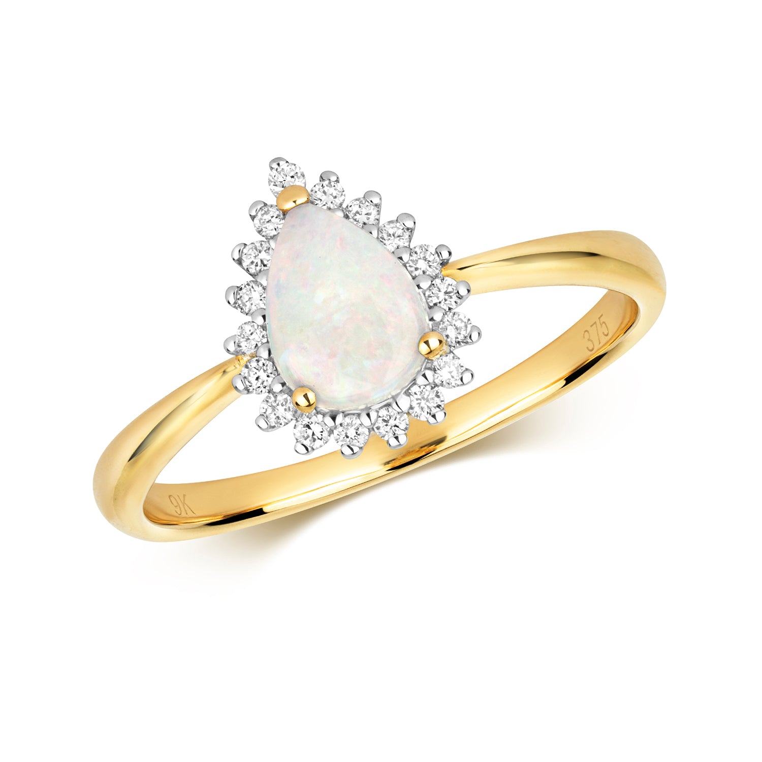 9ct Yellow Gold Natural Opal and Diamond Cluster Ring, Sizes J to Q (291O)