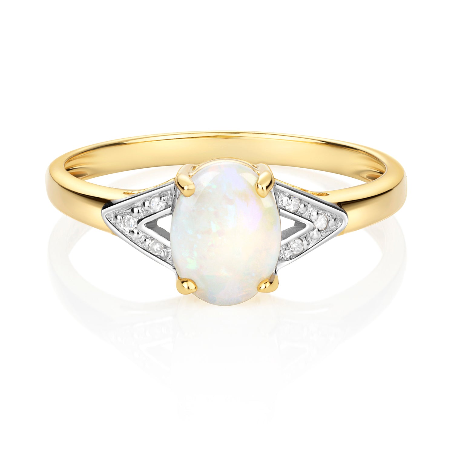 - 9ct Yellow Gold Natural Opal and Diamond Ring