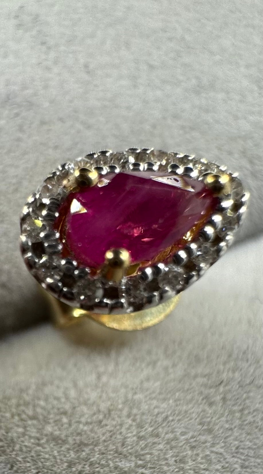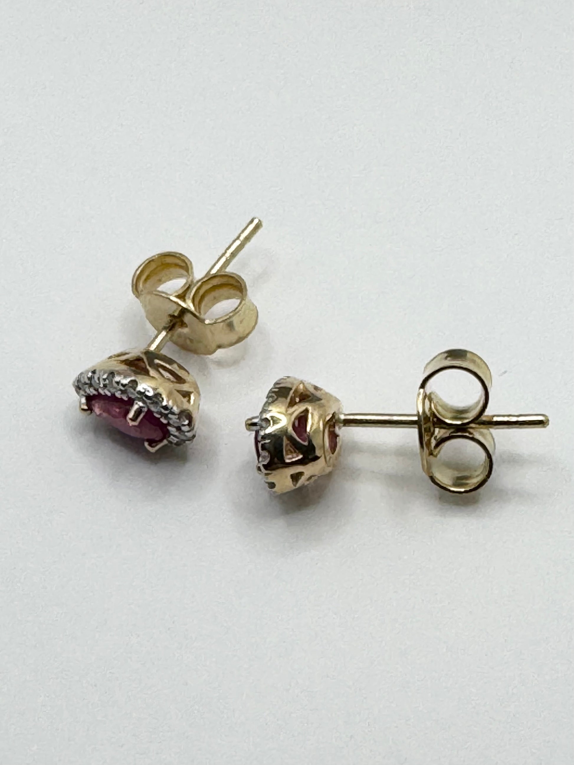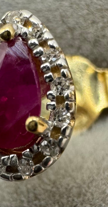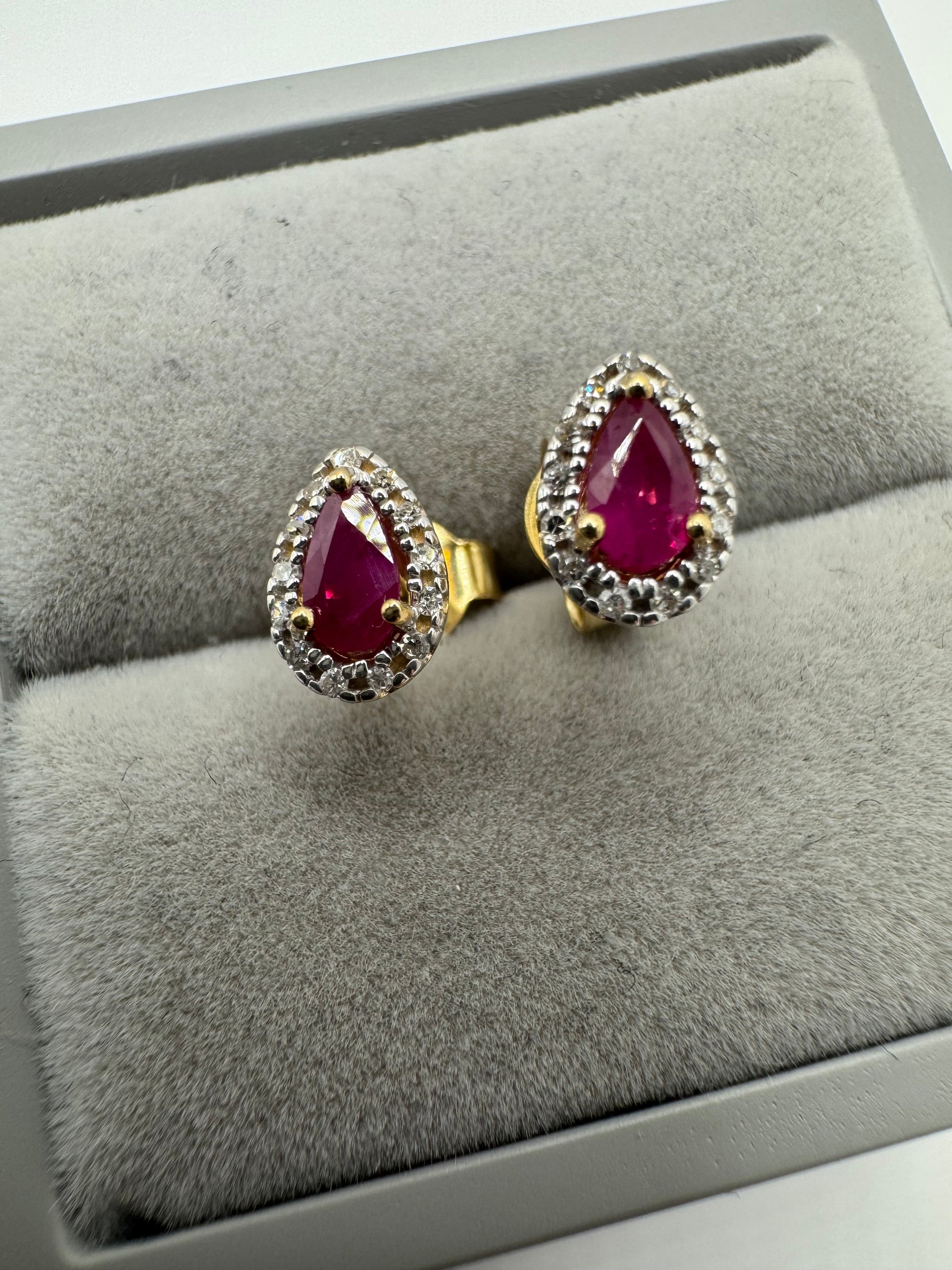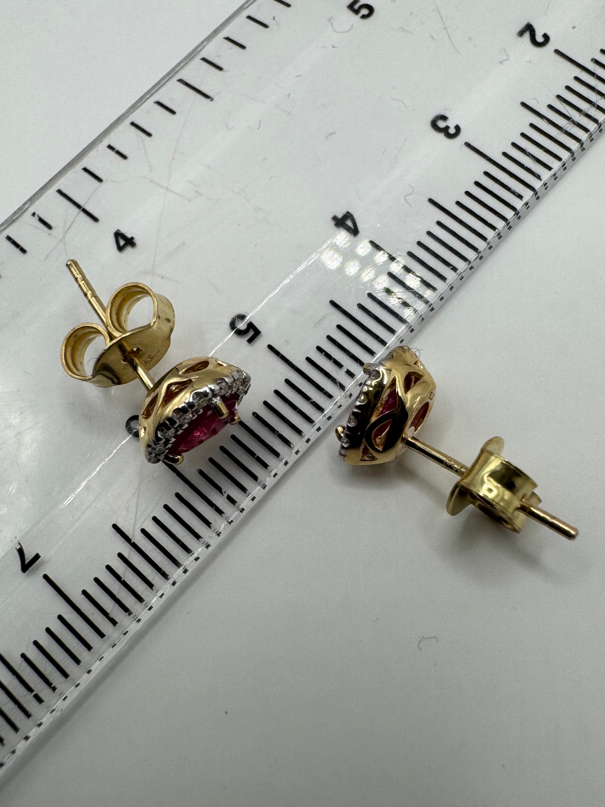 9ct Yellow Gold Natural Ruby Pearcut and Diamond Cluster Stud Earrings (265)
