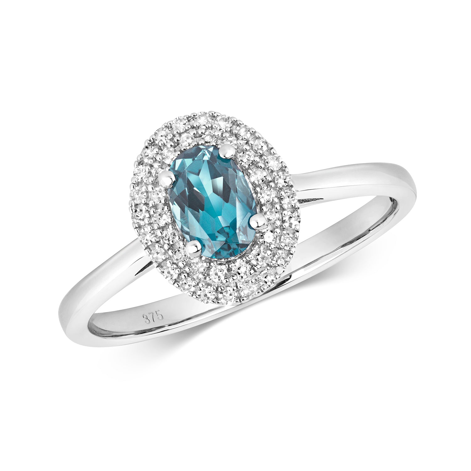 - 9ct White Gold Diamond and London Blue Topaz Ring