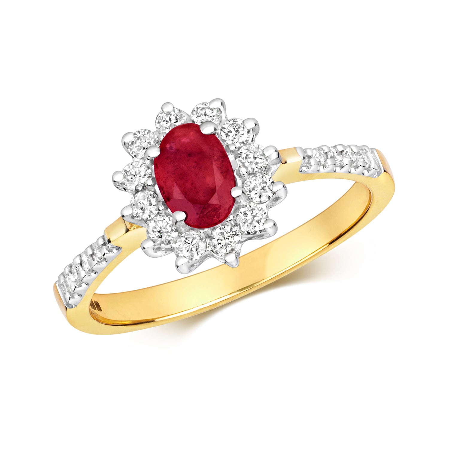 - 9ct Yellow Gold Ruby and Diamond Cluster Oval Ring
