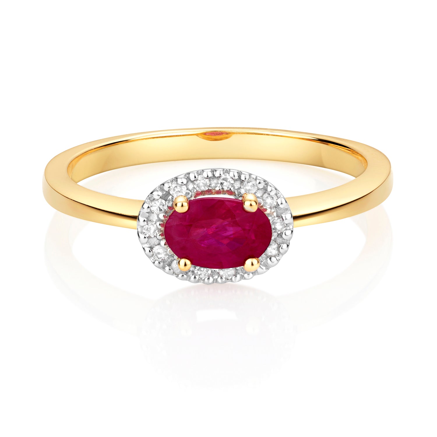 - 9ct Yellow Gold Ruby and Diamond Oval Cluster Ring