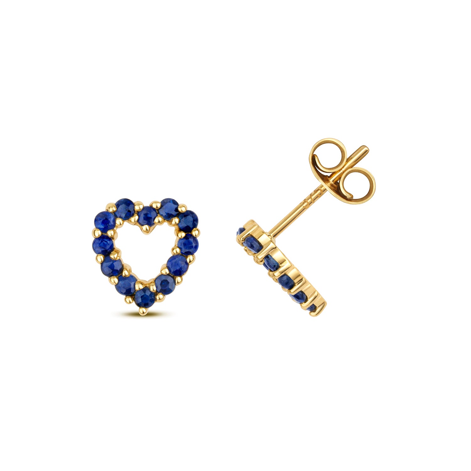 - 9ct Yellow Gold Sapphires Heart Stud Earrings