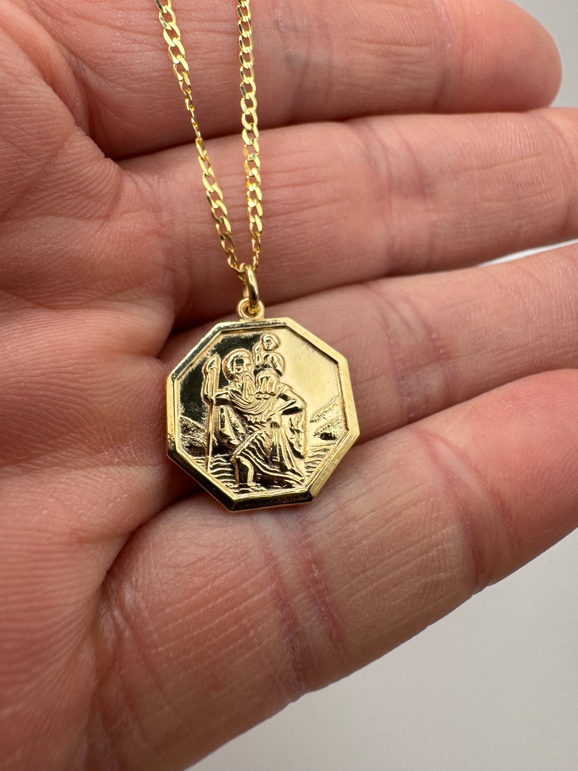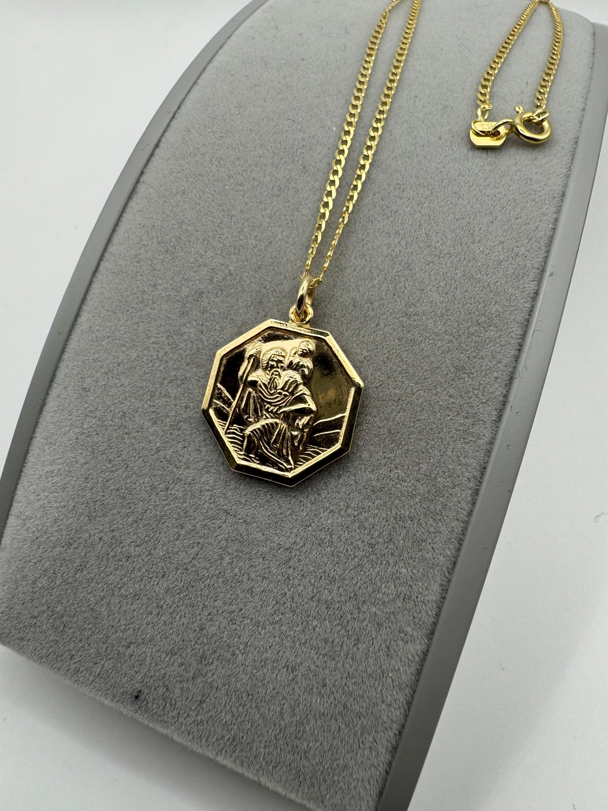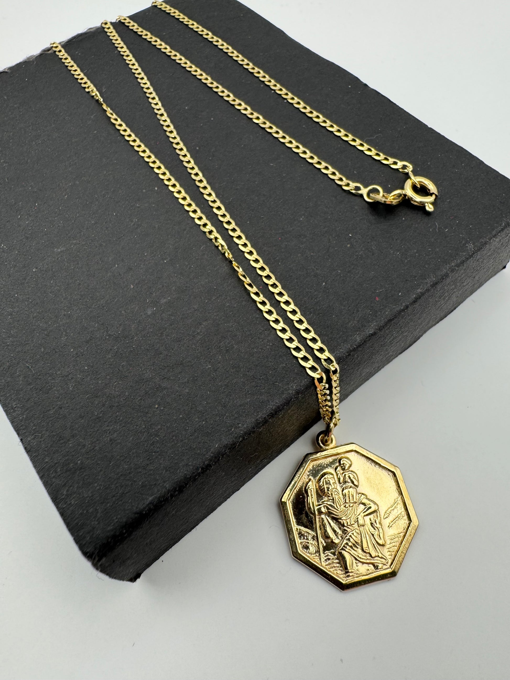 - 9ct Yellow Gold Solid St Christopher Pendant Necklace