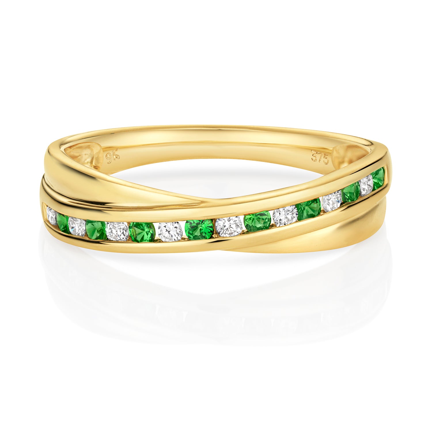 - 9ct Yellow Gold Tsavorite and Diamond Band Ring