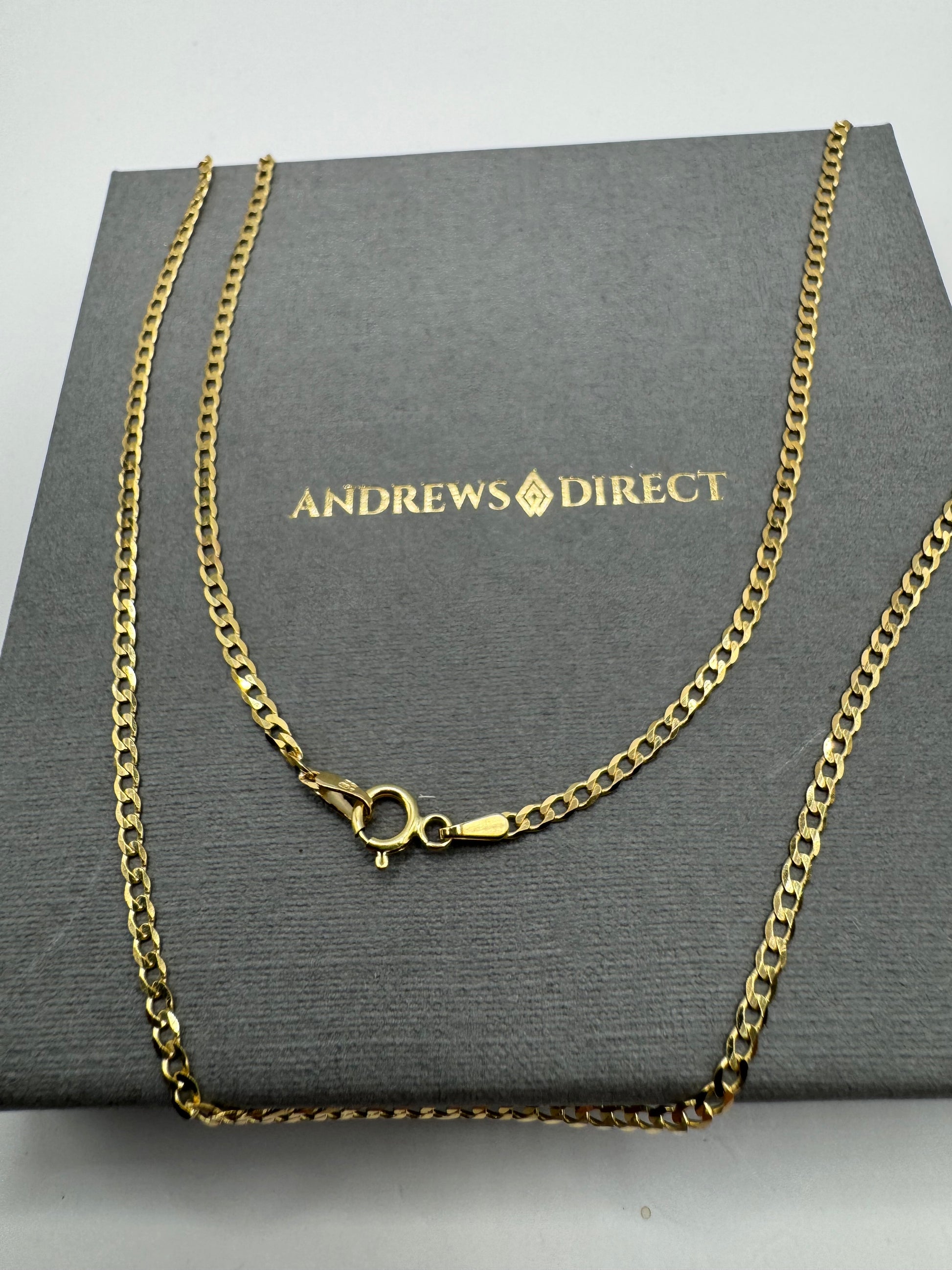 9ct Yellow Gold Flat Bevelled 1.9mm Curb Chain Various Lengths (076B)