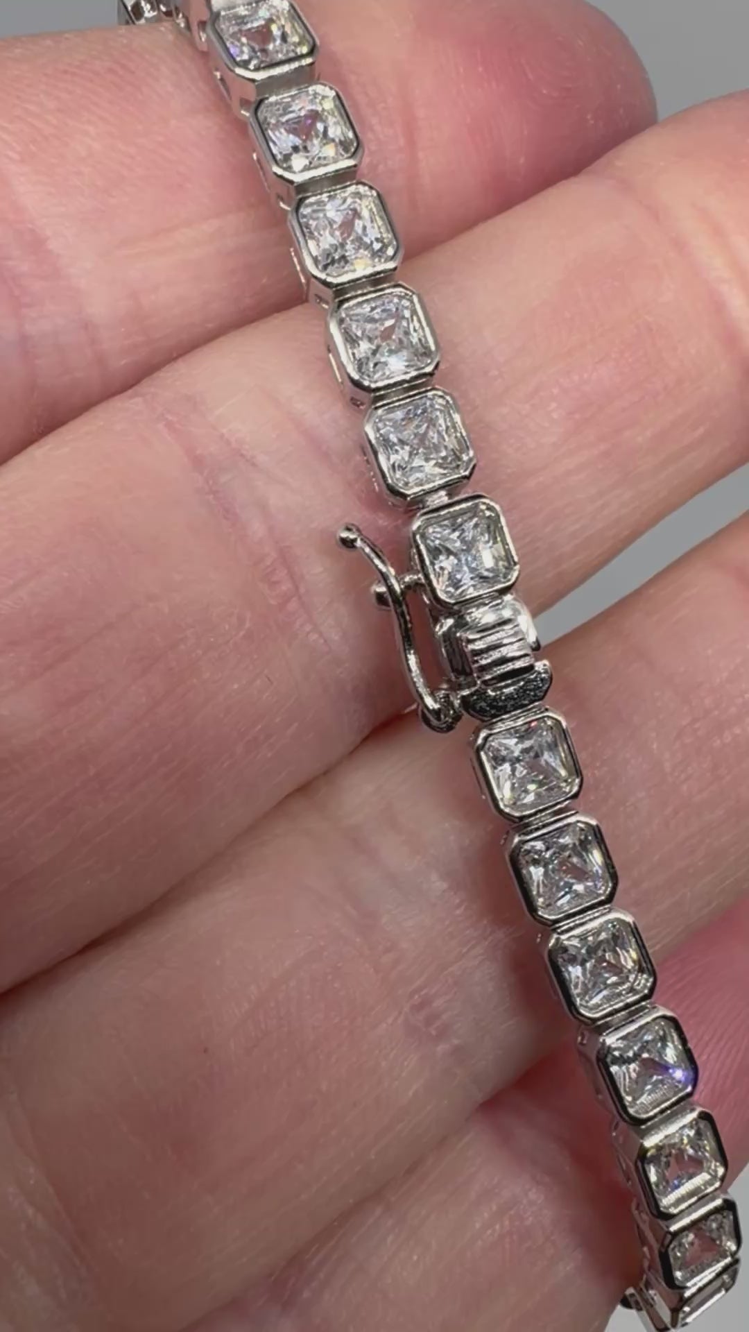 - Sterling Silver 4.8mm Princess Cut Zirconia Tennis Bracelet