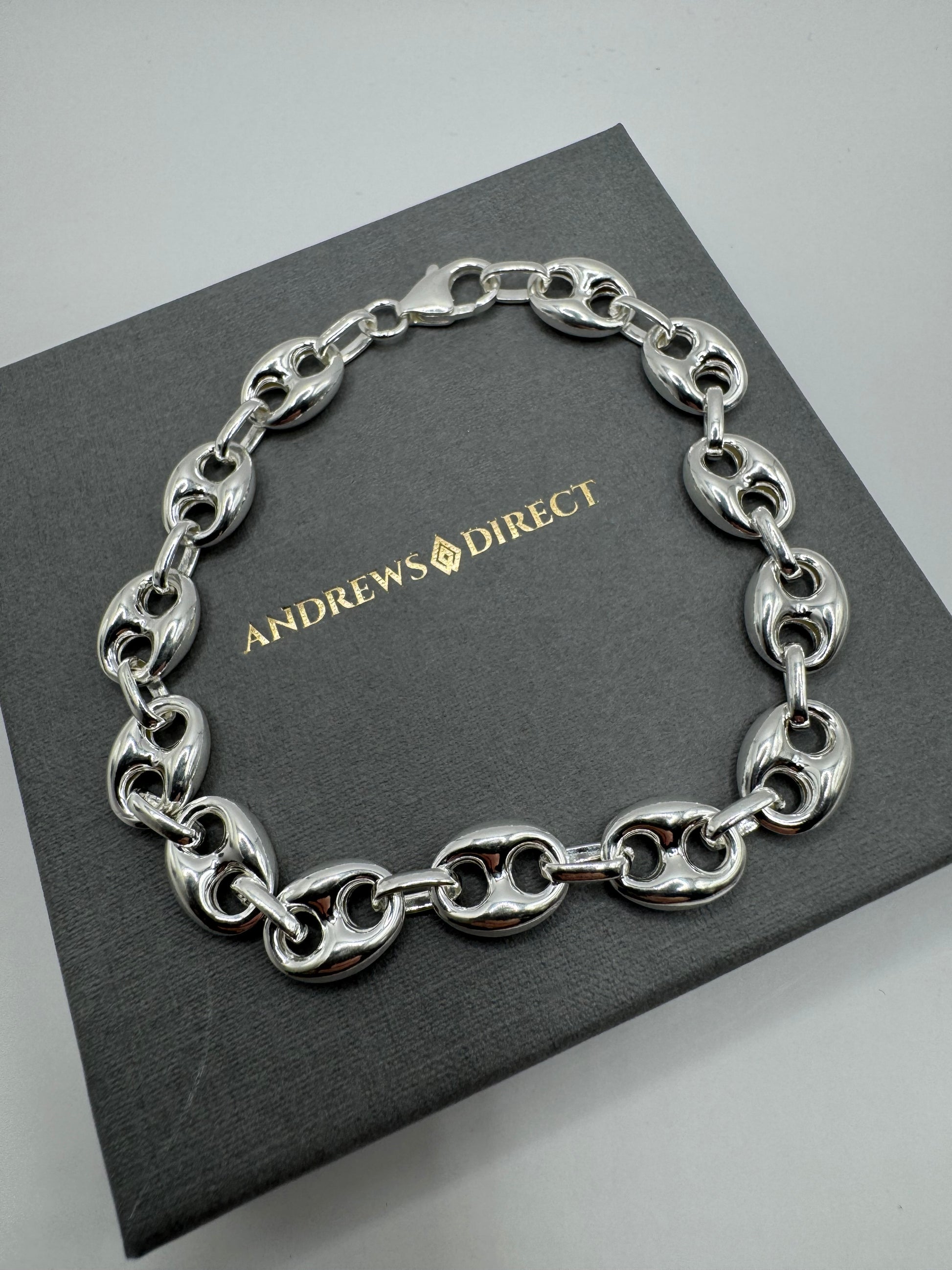 Sterling Silver Gucci Styled and Oval Chain Bracelet 8.5 Inch / 21.5cm (6634)