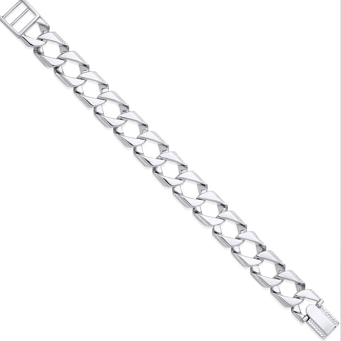 - Sterling Silver Ribbed Edge Curb Bracelet