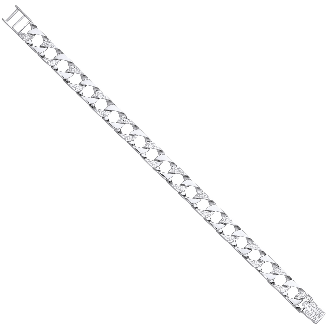 - Sterling Silver Patterned and Plain Link Curb Bracelet