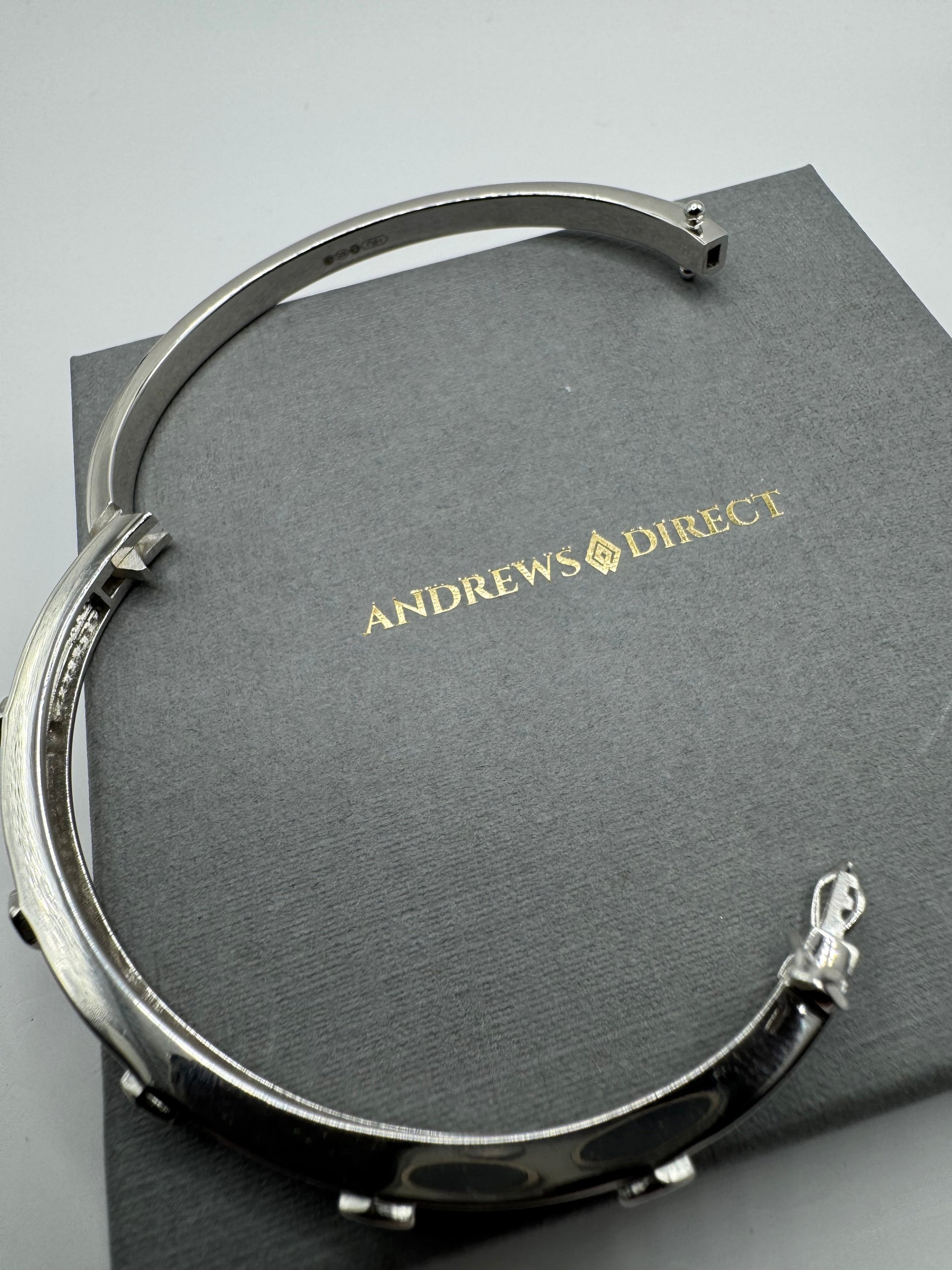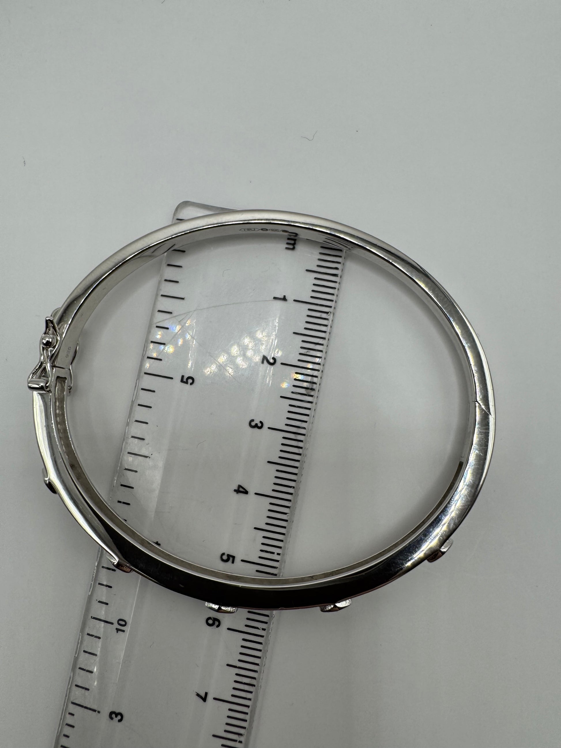 Sterling Silver Round Zirconias Set Hex Detail Ladies Bangle (0185)