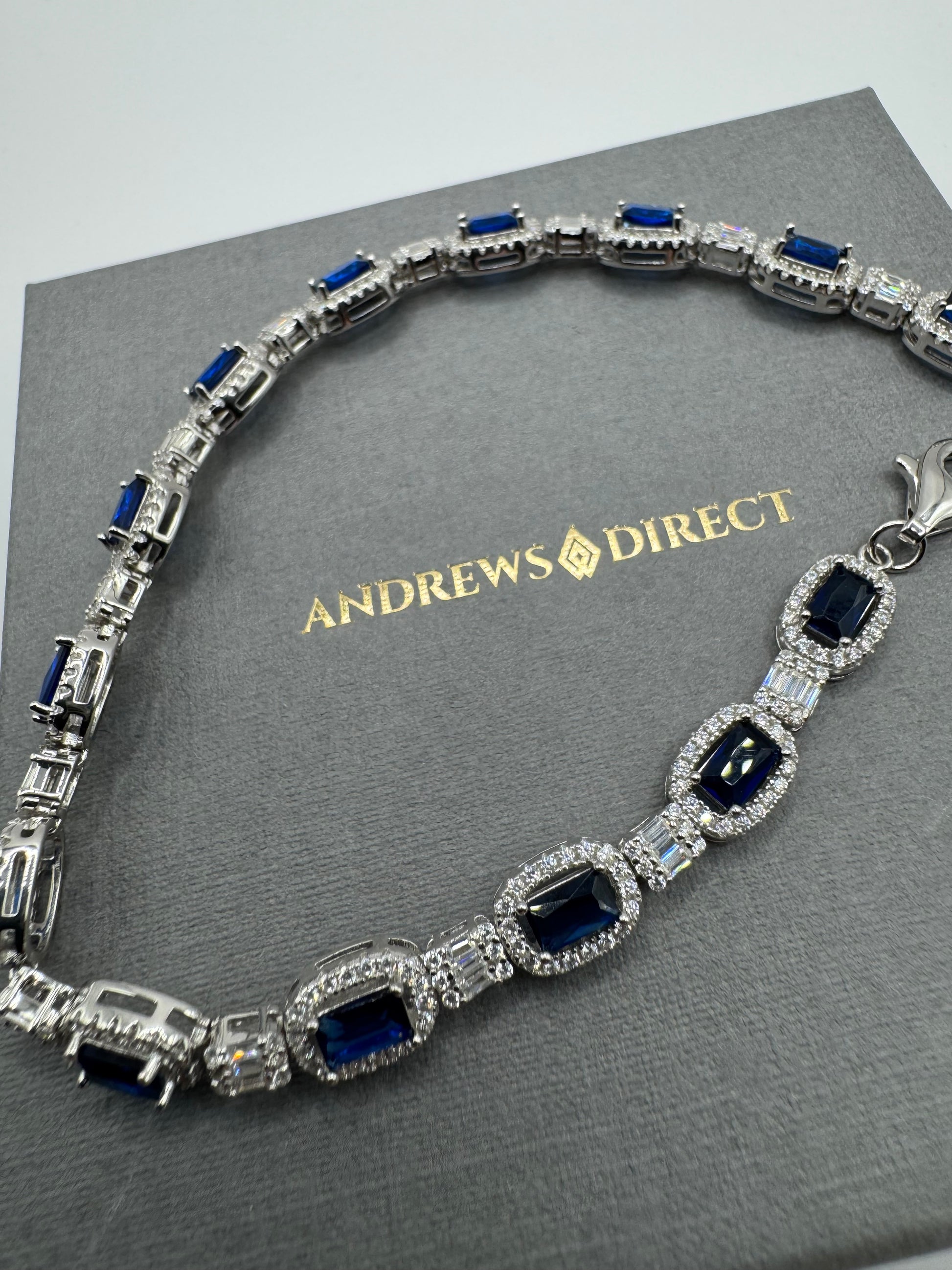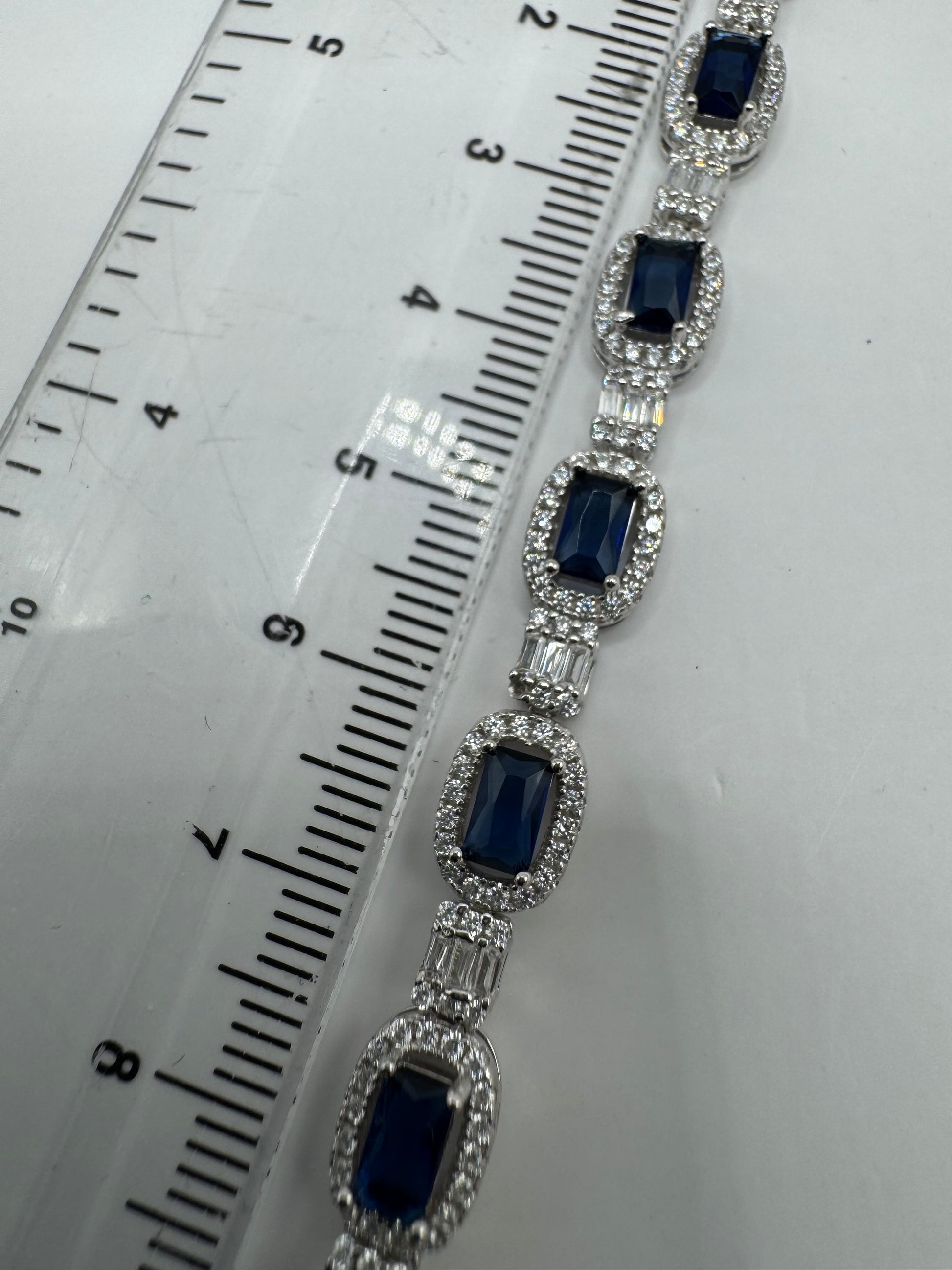 - Sterling Silver Blue and Clear Stones CZ Tennis Bracelet